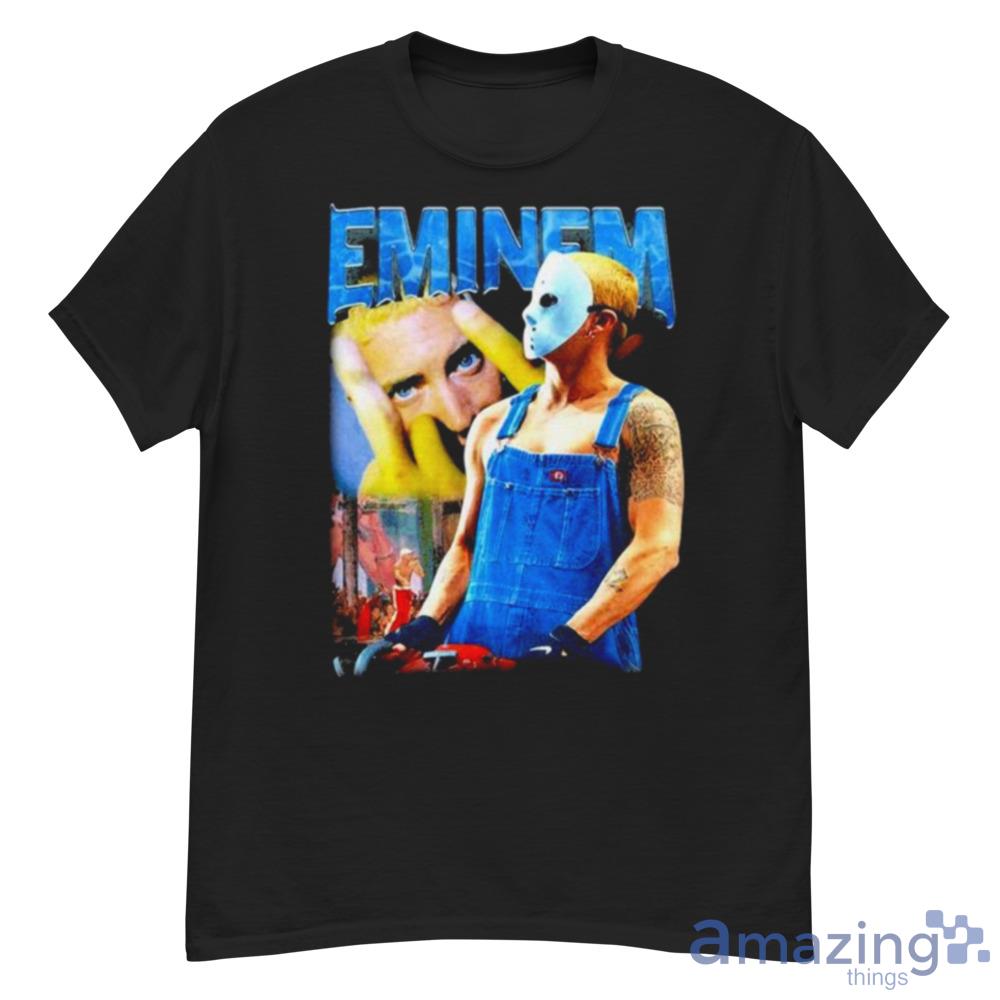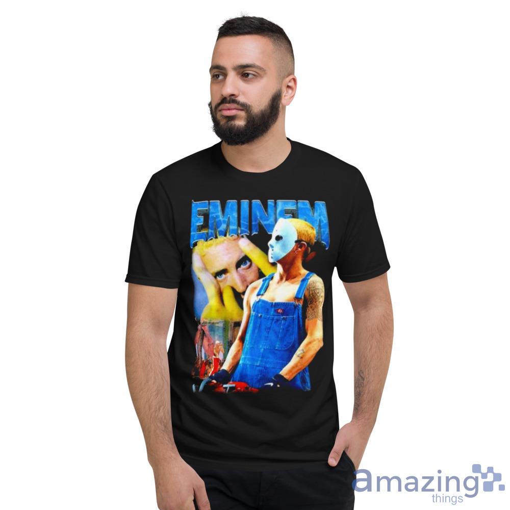 Crafted from premium quality materials, this shirt is designed to offer superior comfort and durability. It features a high-quality graphic print of Eminem wearing the infamous hockey mask of Jason Voorhees, adding a touch of horror and edginess to your fashion game.
