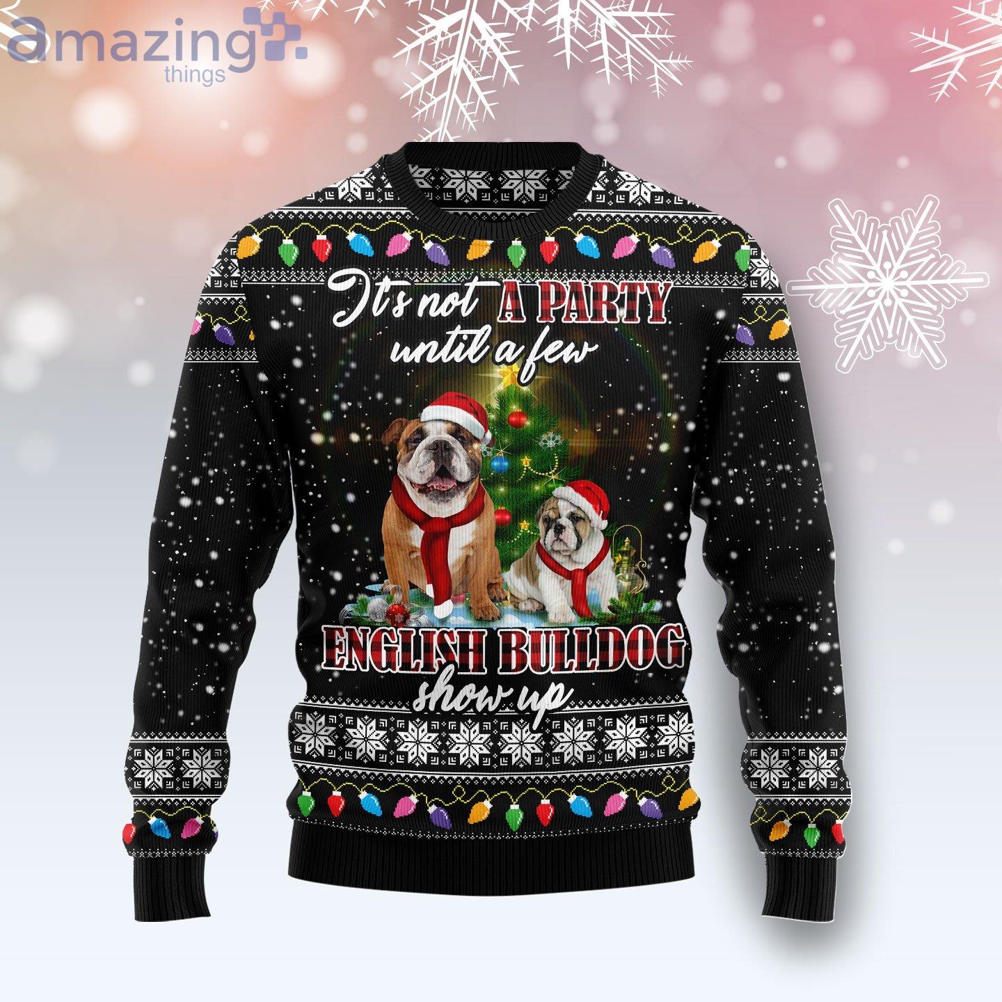 English Bulldog Show Up Ugly Christmas Sweater Funny Family Ugly Christmas Sweater Informations: