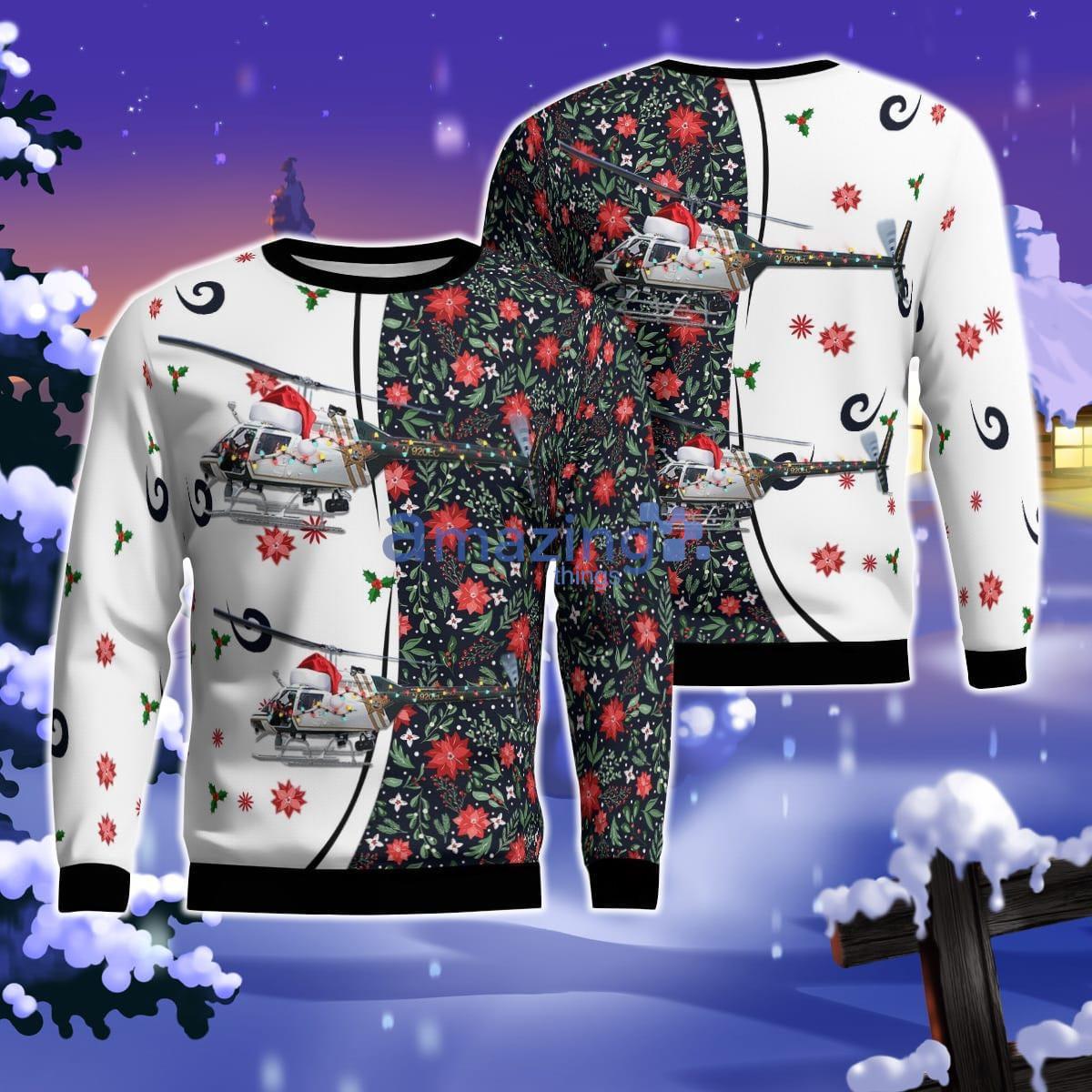 This unique sweater features a playful design that combines the iconic OH-58C Kiowa helicopter with classic Christmas elements. The sweater’s vibrant colors and intricate details make it a true eye-catcher, ensuring you’ll be the center of attention at any holiday gathering.