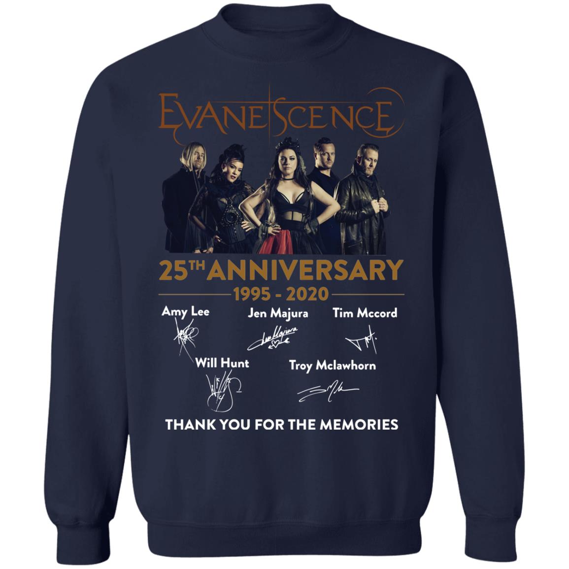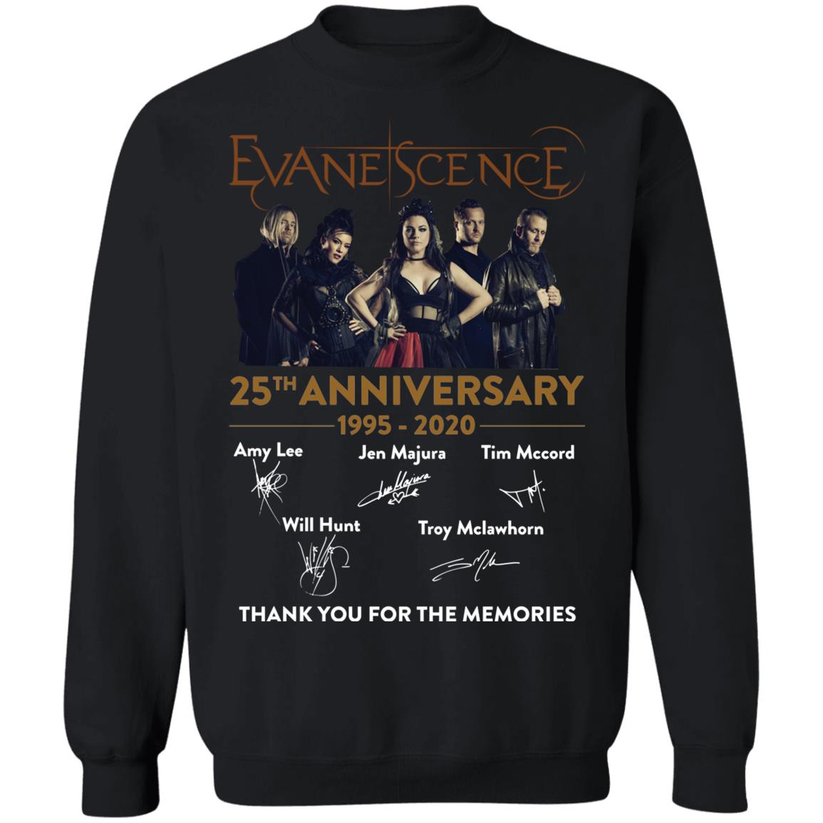 Understanding that fans appreciate variety in their band merchandise, the Evanescence 25th Anniversary 1995-2020 Signatures Thank You For The Memories Shirt collection is available in multiple styles to suit different preferences and climates. Fans can choose from: