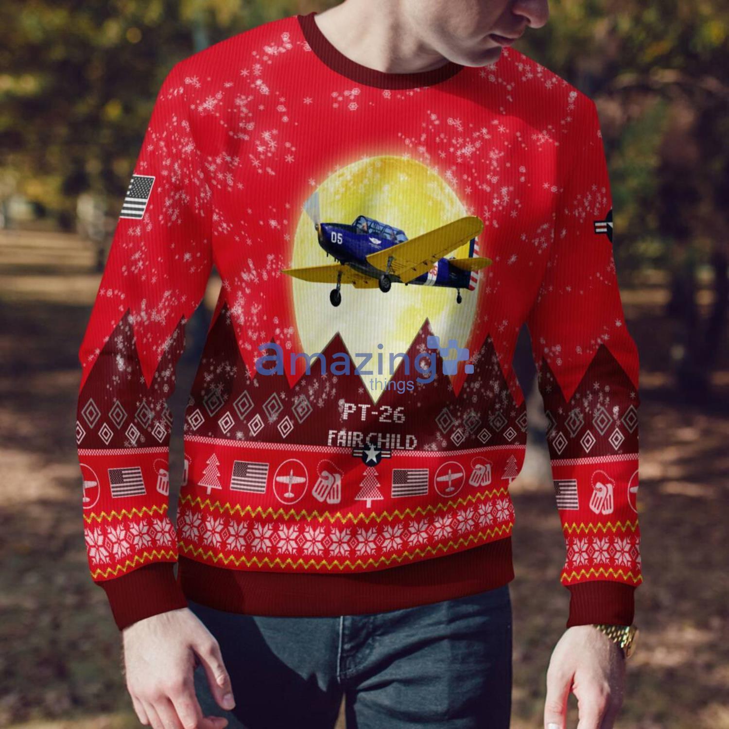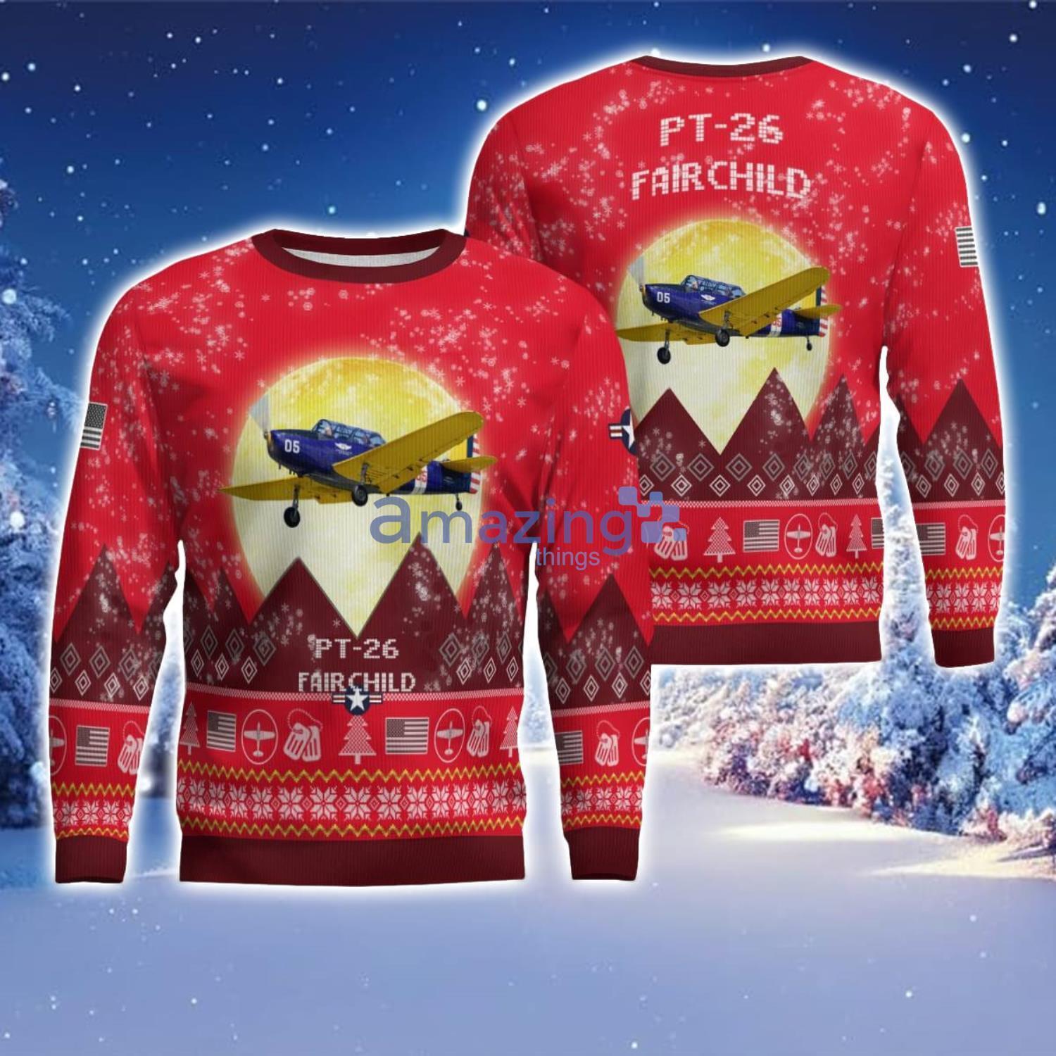 Fairchild PT-26 PT26 Aircraft Moonlight Red Color Ugly Christmas Sweater Christmas Gift Information
