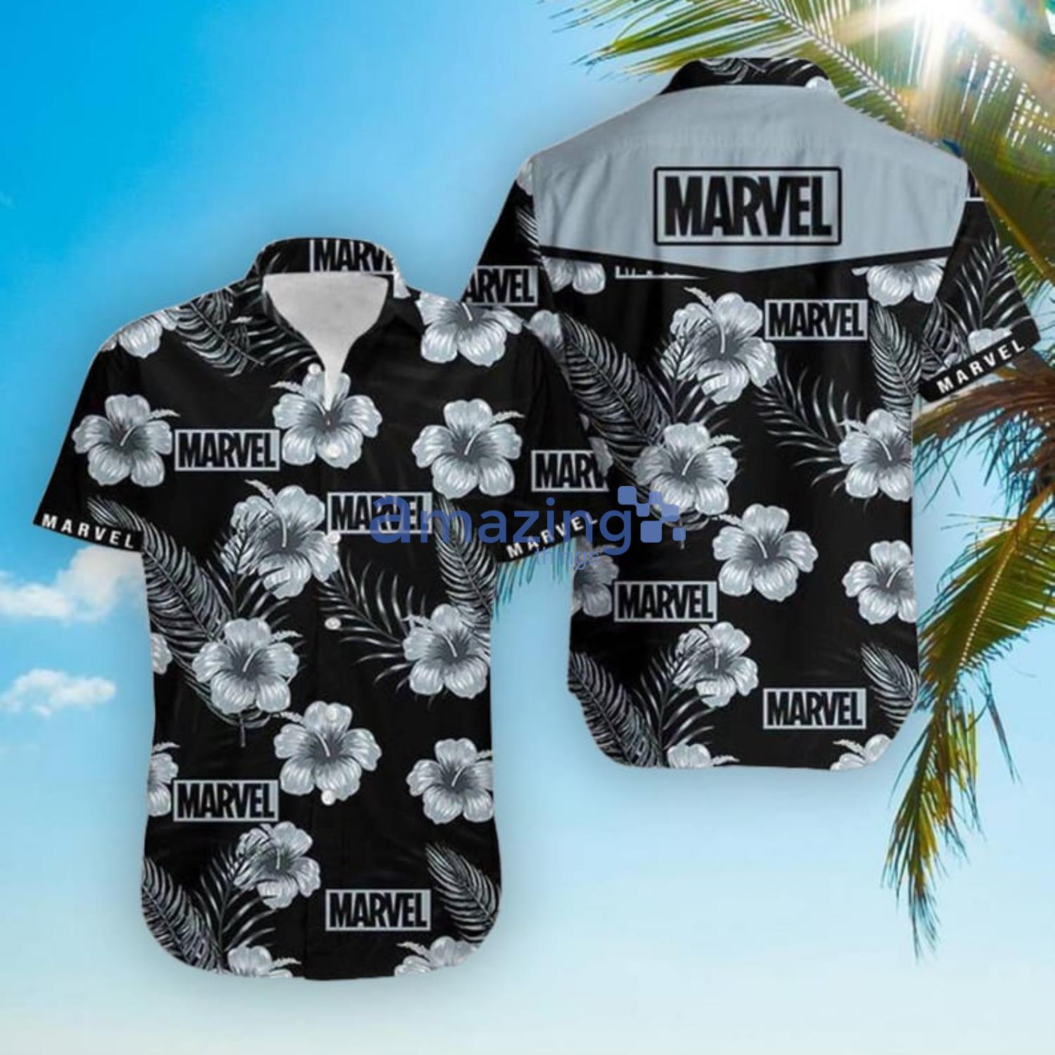 Featuring a vibrant floral pattern in classic Hawaiian style, this shirt is accented with your favorite Marvel superheroes. The Avengers team is prominently displayed, making it perfect for any superhero-loving family. The bright colors and attention to detail make this shirt a standout piece for any summer occasion.