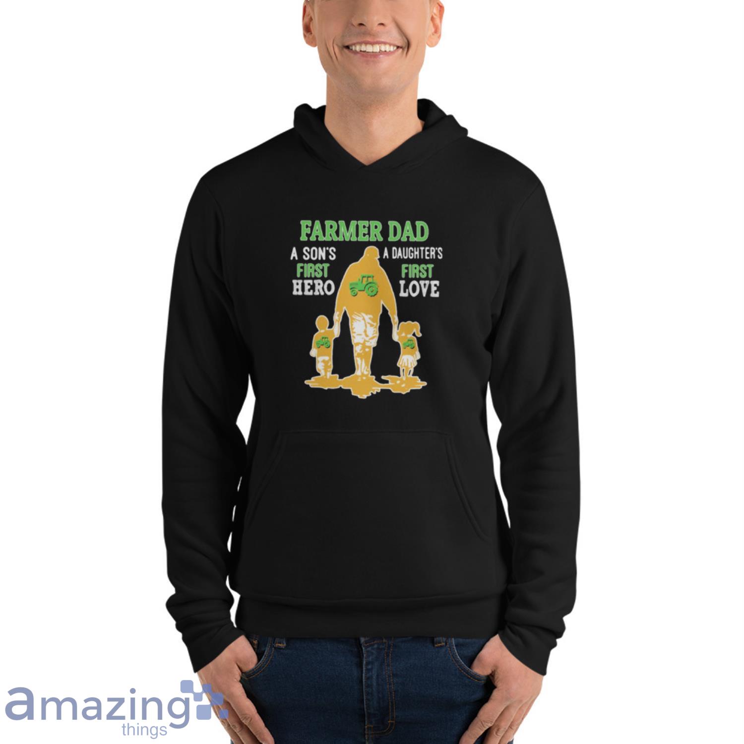 Order now and surprise your dad with a unique and heartfelt gift that he’ll cherish for years to come. Show him how much you appreciate him with our Farmer Dad A Son’s First Hero A Daughter’s First Love Dad Happy Father’s Day Shirt!