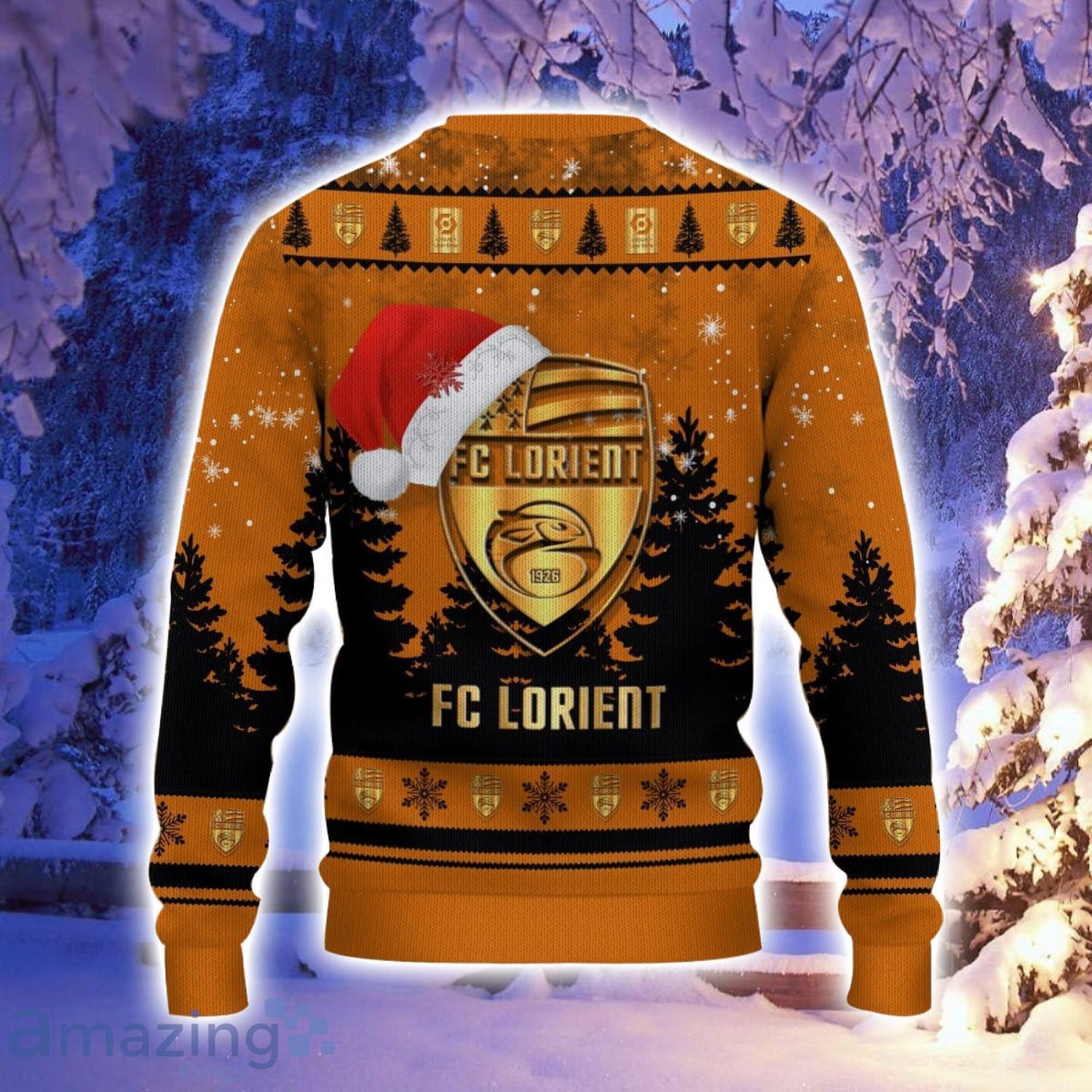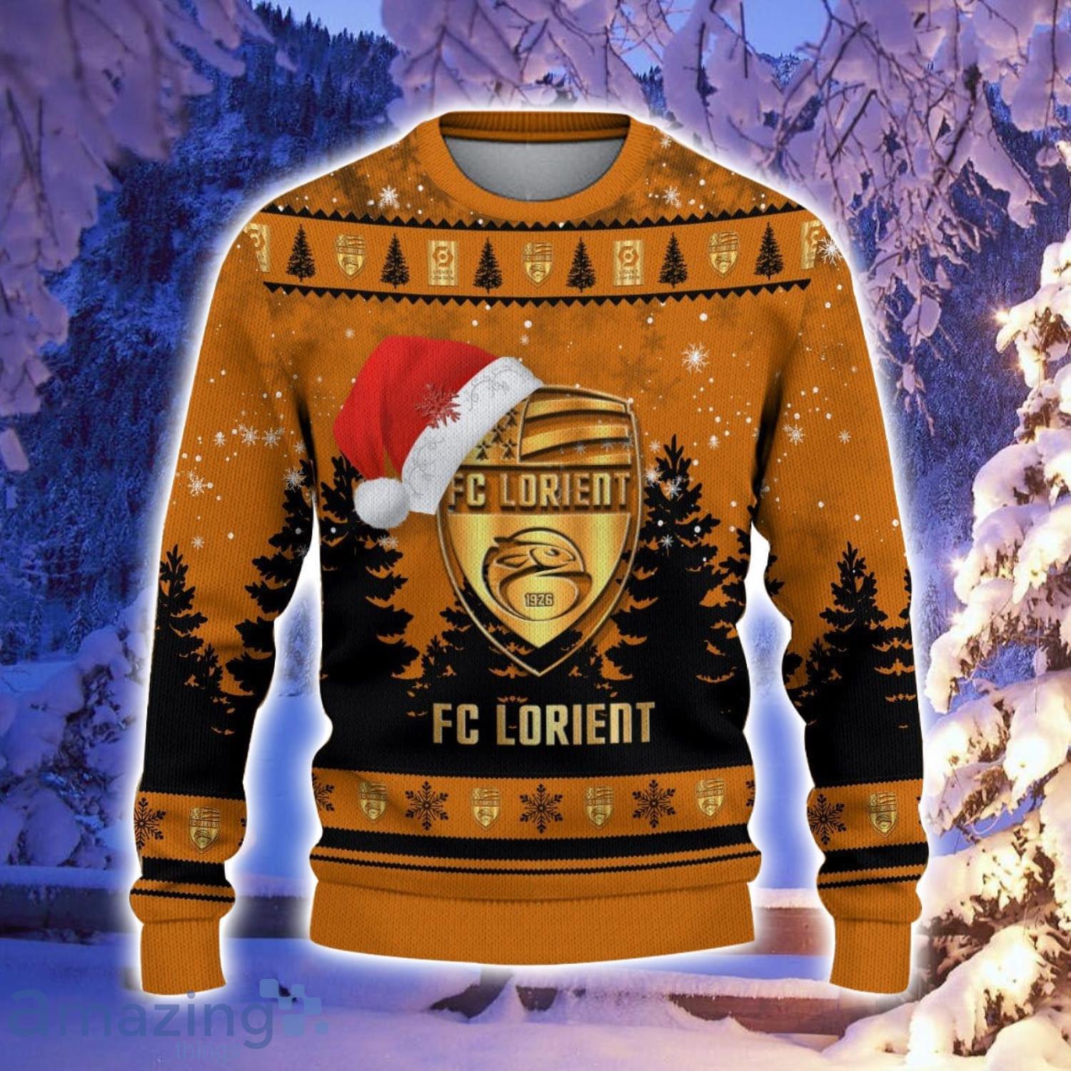 FC Lorient Logo Wearing Santa Hat Ugly Christmas Sweater Christmas Gift 3D Sweater