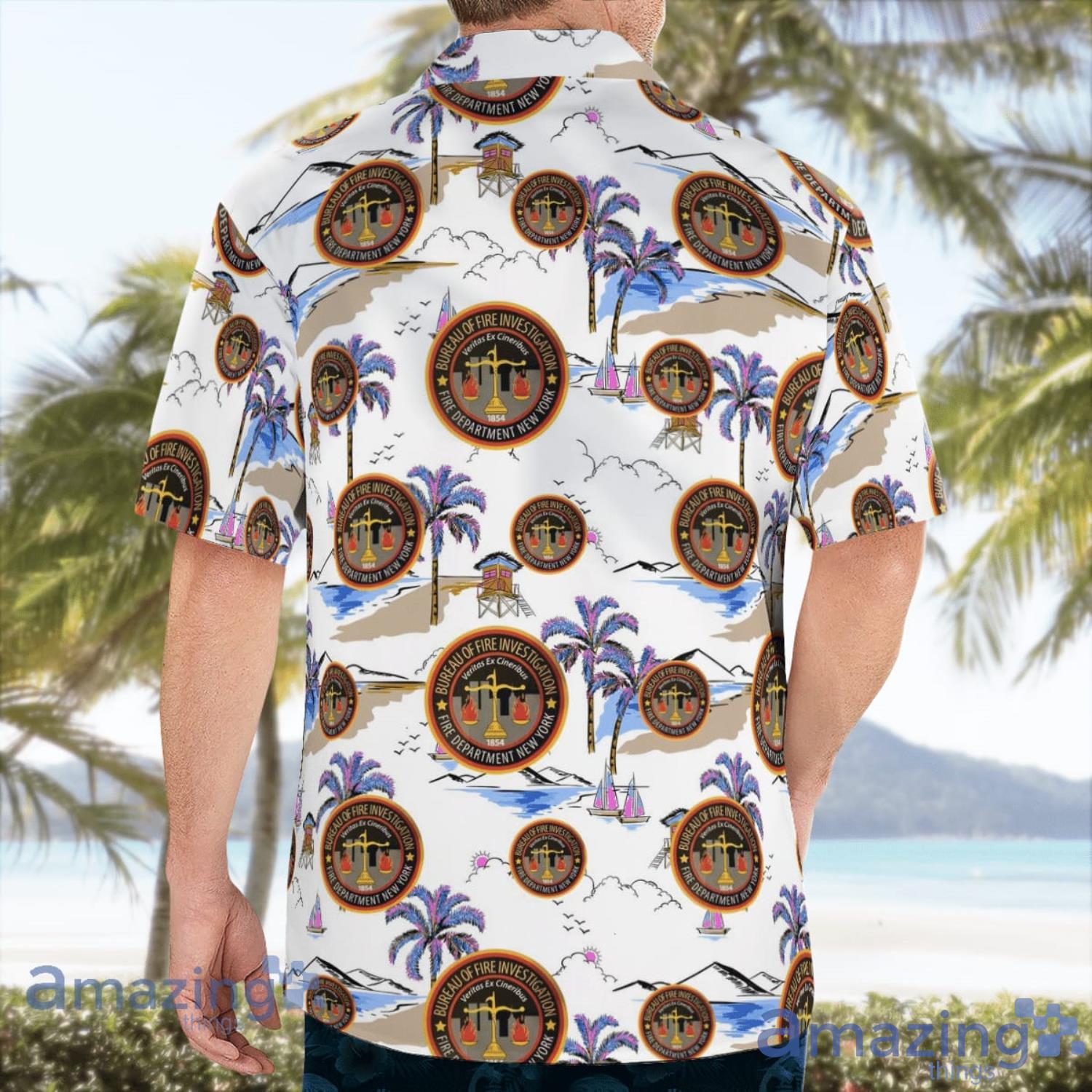 FDNY Fire Marshals Beach Summer Gift Coconut Pattern Hawaiian Shirt Details: