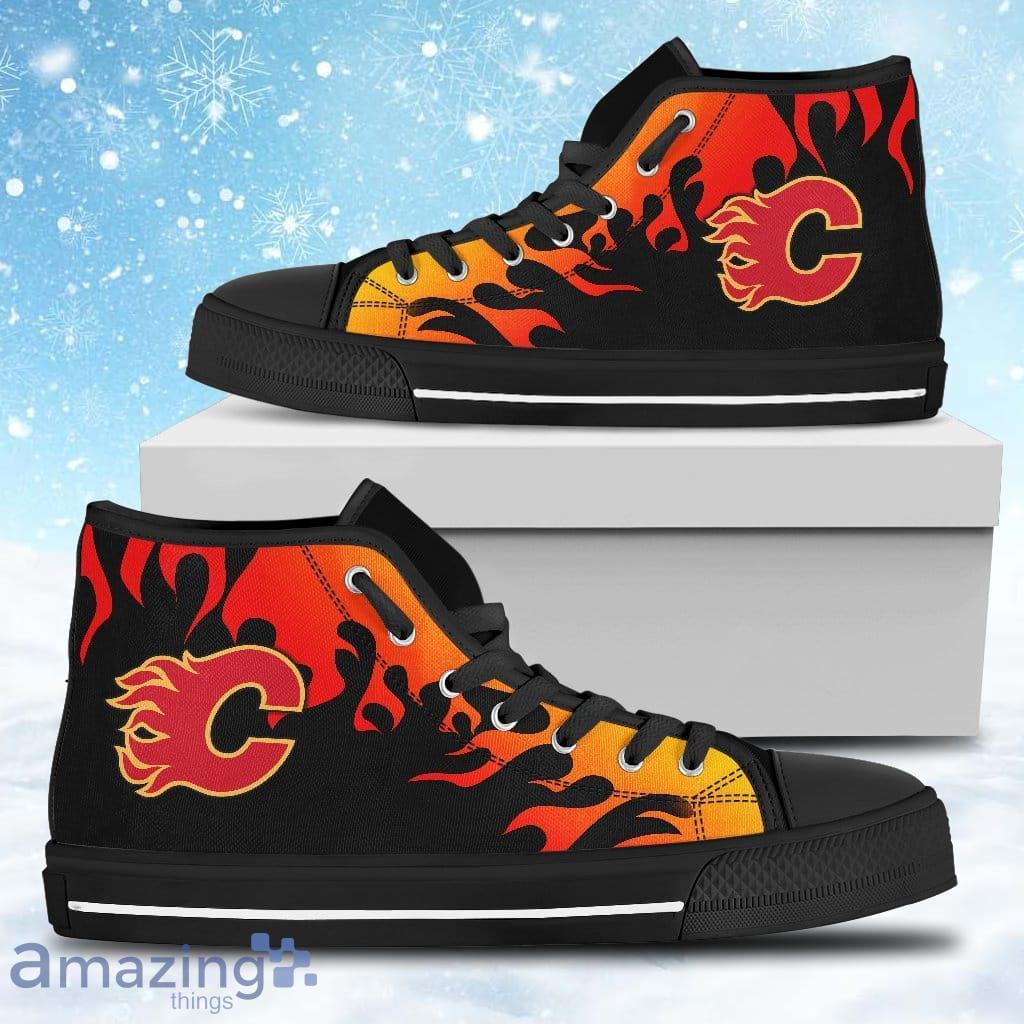 Some of the Fire Burning Fierce Strong Logo Calgary Flames High Top Shoes Gift For Big Fans photos