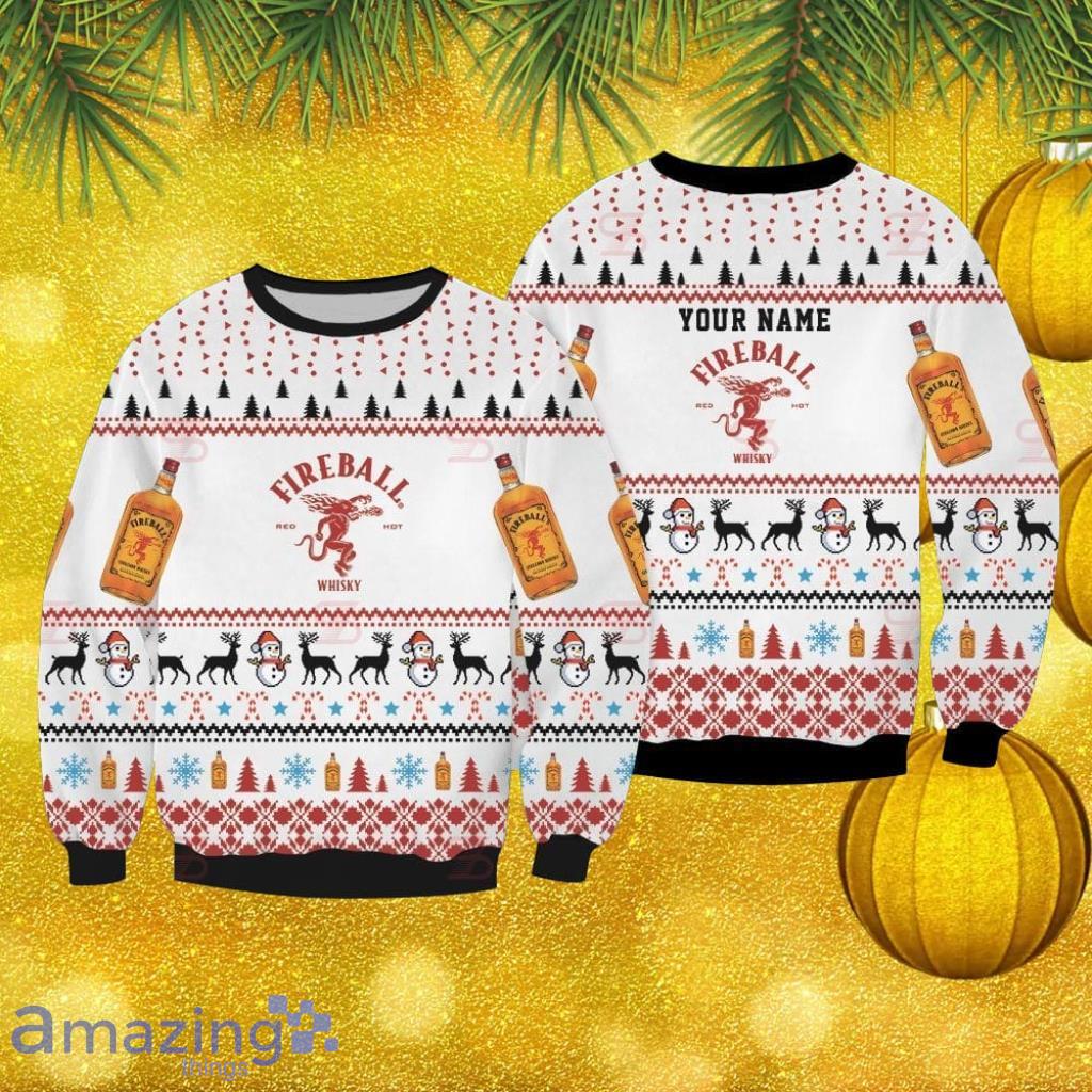 Fireball Cinnamon Whisky Custom Name Ugly Sweater 3D Gift Christmas Sweatshirt