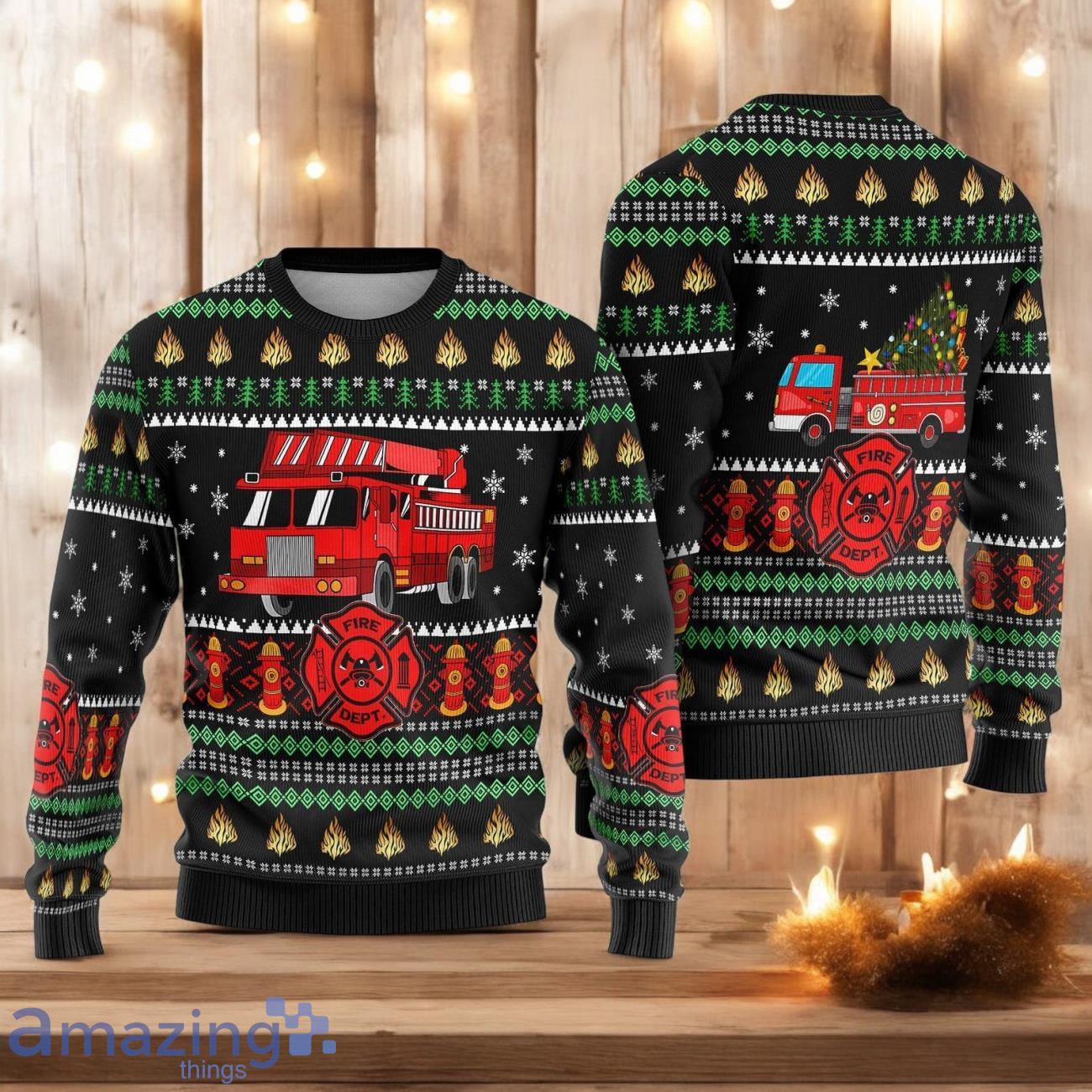 Embrace the Holiday Spirit with the Firefighter Truck Ugly Christmas Sweater
