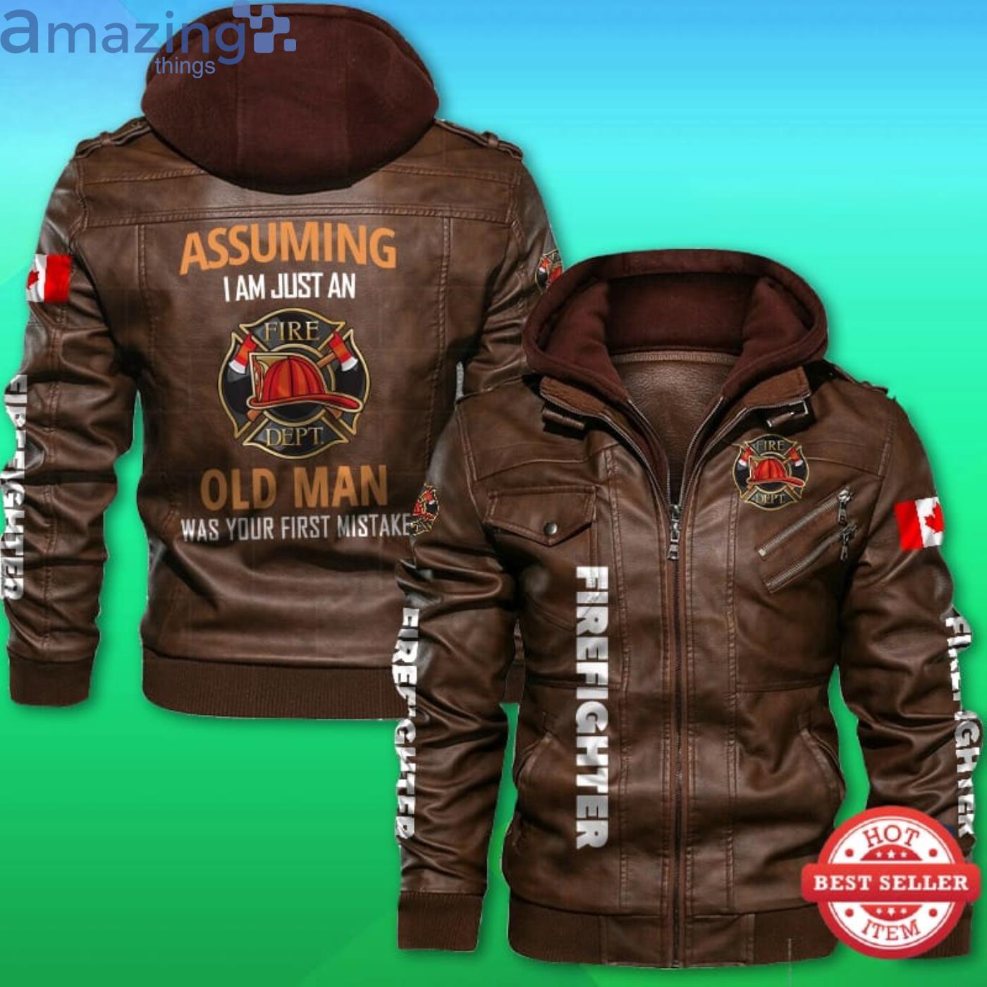 Firefighter Your First Mistake Canadian Flag 2D Leather Jacket