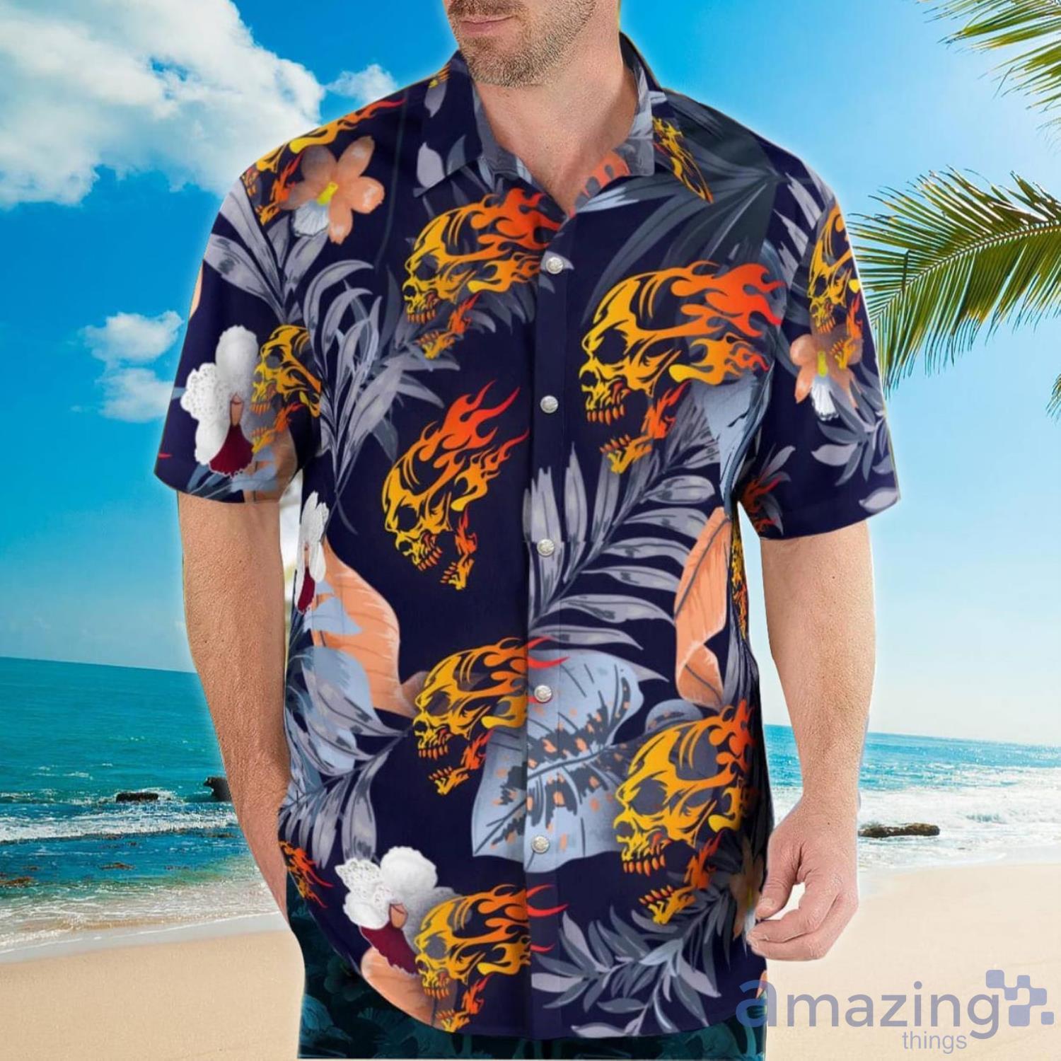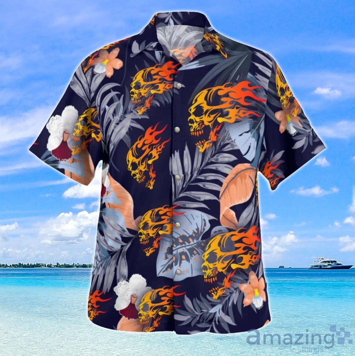 Some of the Flaming Angry Skull Leaf Pattern Hawaiian Shirt For Men And Women photos