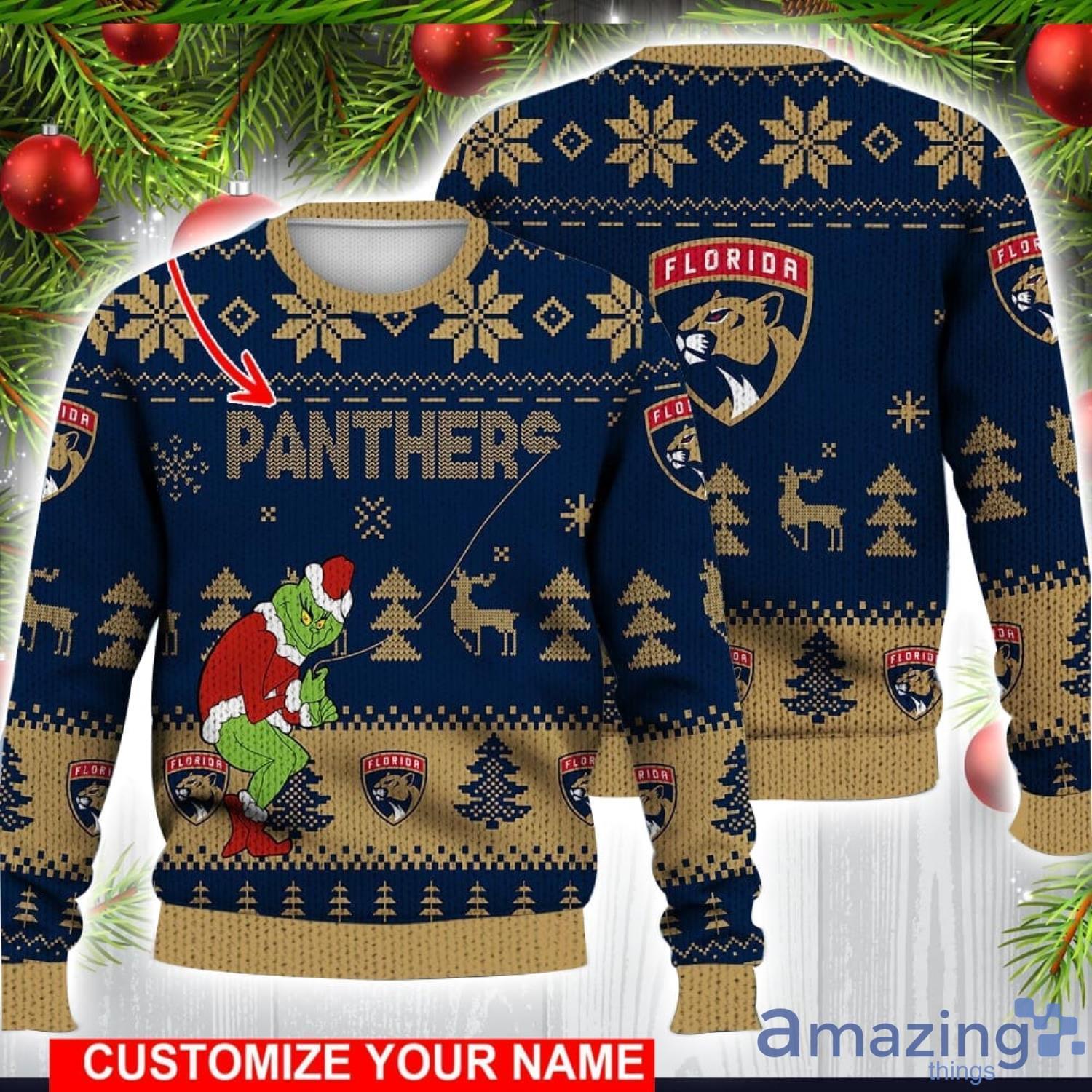 Florida Panthers Grinch Ugly Christmas Sweater Ice Hockey NHL Christmas Gift 3D Sweater Custom Name Informations: