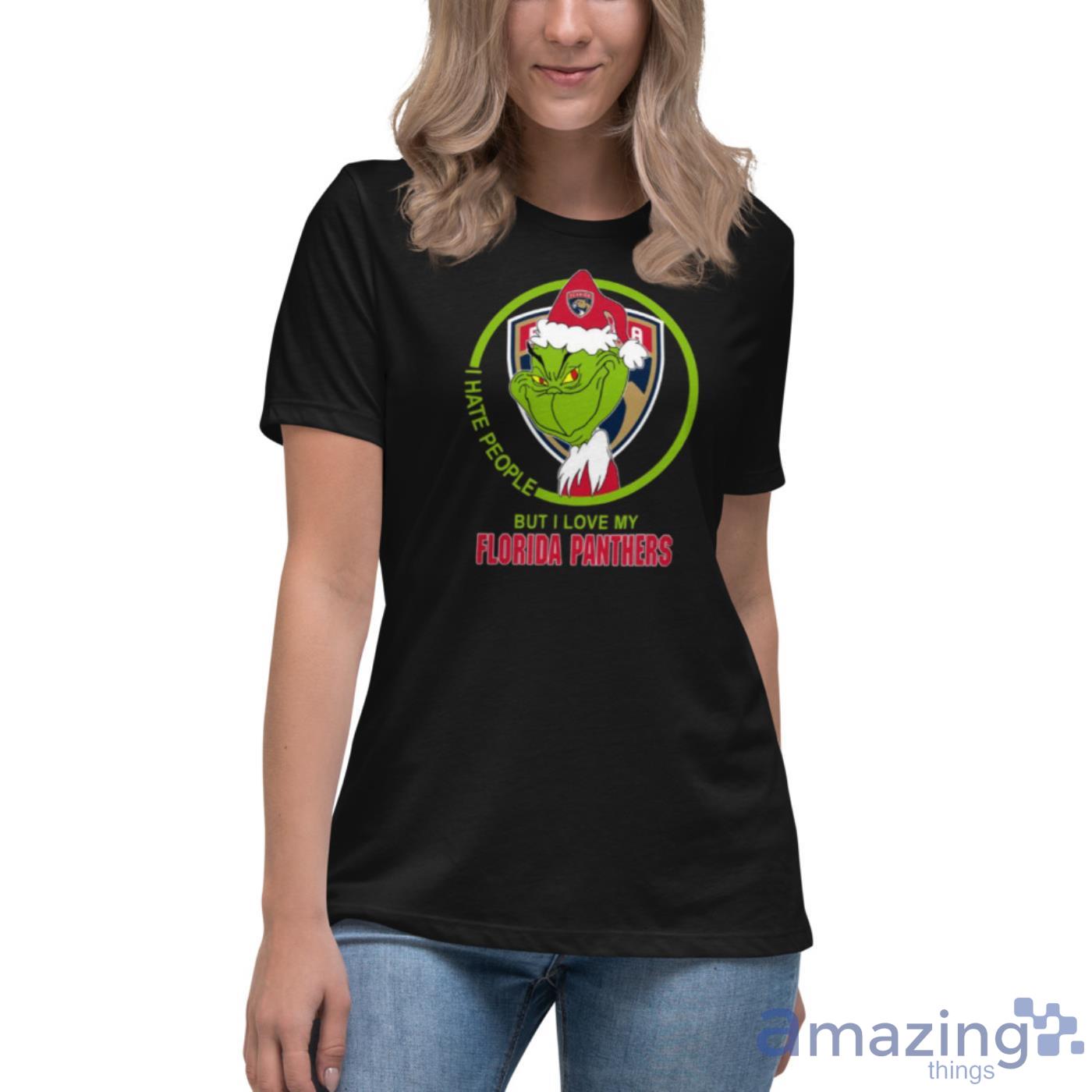 Florida Panthers NHL Christmas Grinch I Hate People But I Love My Favorite Hockey Team Shirt Details
