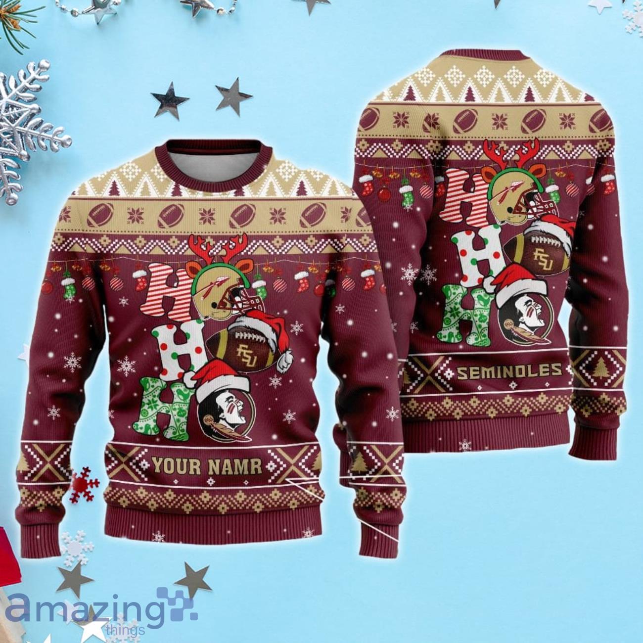 Florida State Seminoles Ho Ho Ho Santa’s Reindeer Ugly Christmas Sweater Xmas Gift For Fans Custom Name