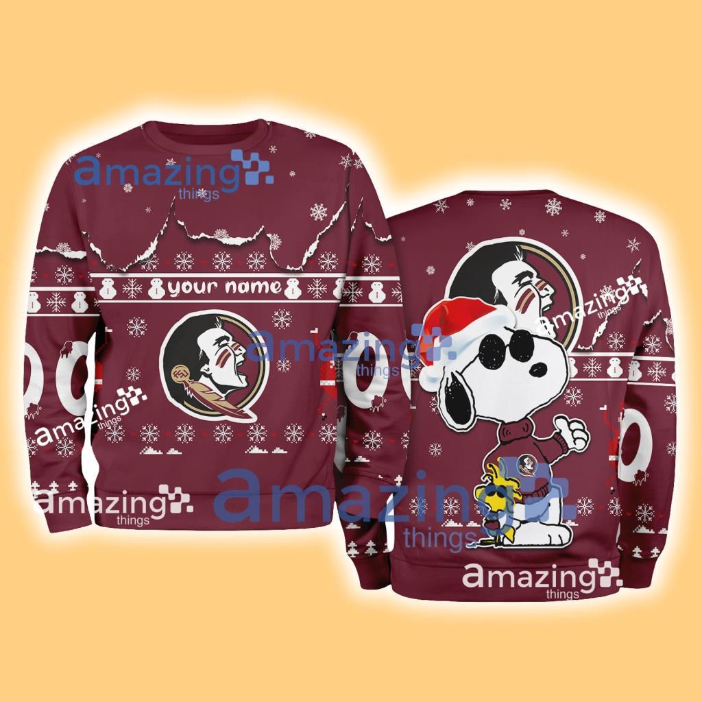 Florida State Seminoles NCAA Snoopy and Woodstock Cute Personalized Number Christmas Ugly Sweater New Gift Limited Edition