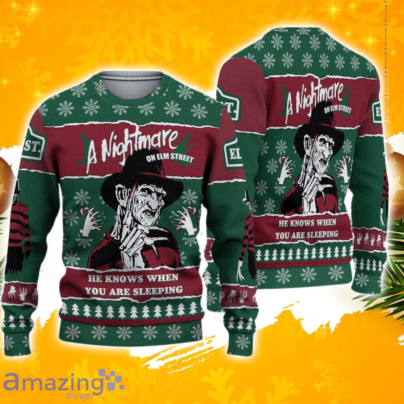 Get ready to make a chilling statement this holiday season with our Freddy Krueger Christmas Sweater! Embrace the perfect blend of festive cheer and thrilling horror as you don this unique and eye-catching sweater. Designed with meticulous attention to detail, this sweater features Freddy Krueger, the iconic nightmare slasher, in a delightfully sinister holiday setting. The high-quality fabric ensures warmth and comfort, making it ideal for those cozy winter evenings. Whether you’re attending a holiday party or spreading some frightful cheer, our Freddy Krueger Christmas Sweater is a must-have for any horror enthusiast. Stand out from the crowd and celebrate the holidays in a spine-tingling style that will leave everyone mesmerized.