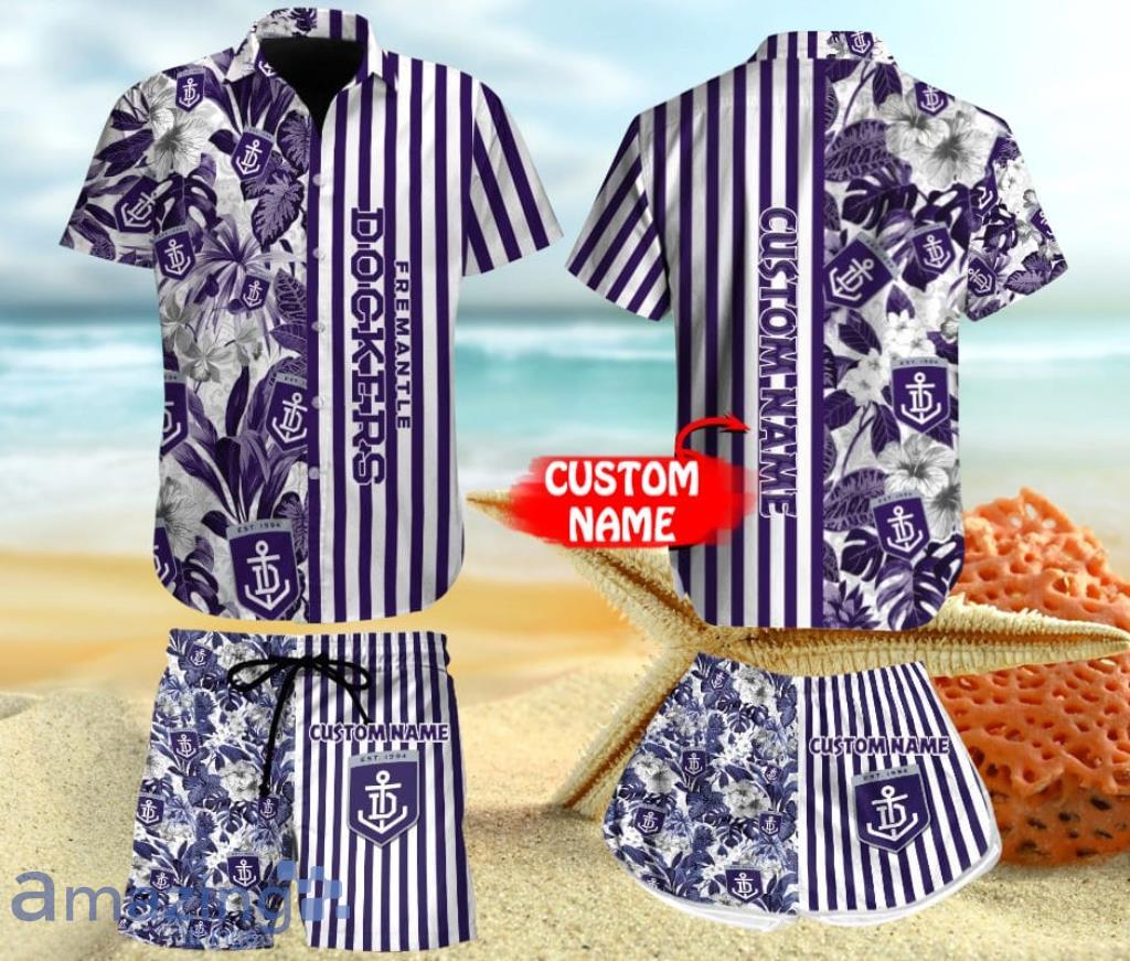 But that’s not all – our Hawaiian shirt and shorts set can be personalized to make it truly unique to you. Add your name or initials to the design, making it a one-of-a-kind piece that showcases your unwavering loyalty to the Fremantle Football Club. It’s the perfect gift for any dedicated fan, or a treat for yourself to elevate your game day attire.