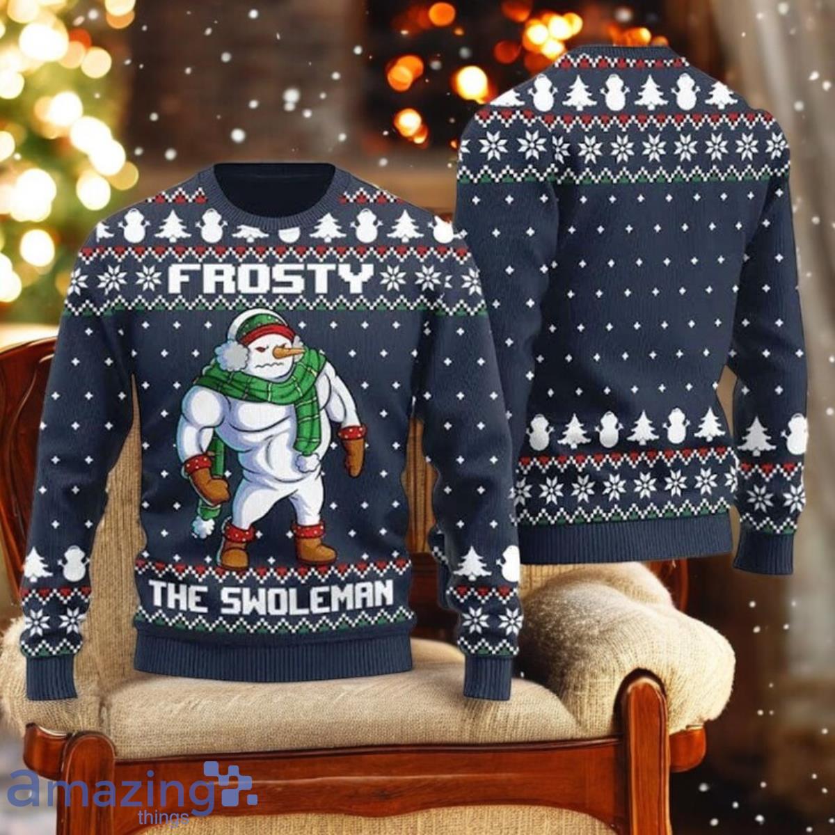 Embrace the Holiday Cheer with the Frosty Swoleman Ugly Christmas Sweater