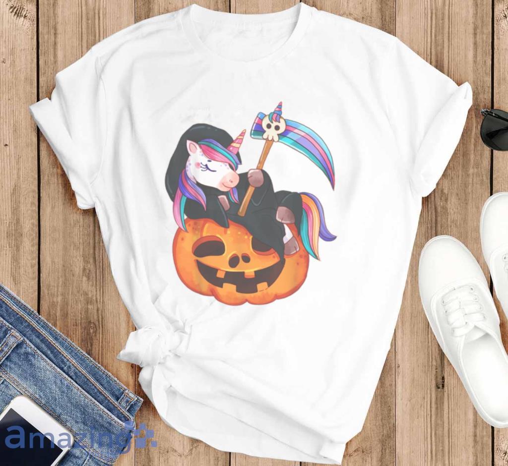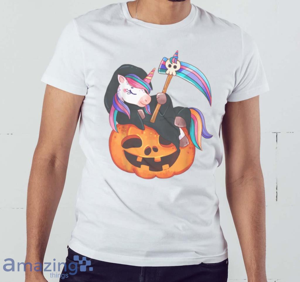 Funny-Happy-Halloween-Cartoon-Unicorn-Pumpkin-Graphic-Tee-T-Shirt