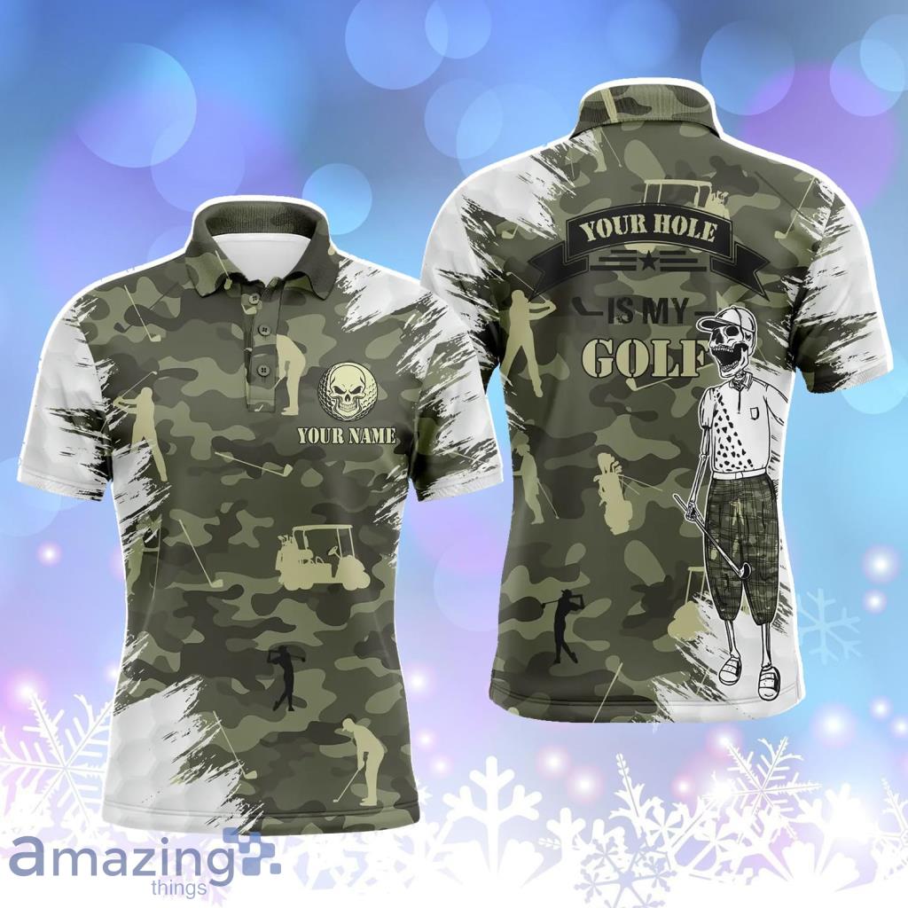 Funny Skull Green Camo Golf Polo Shirts For Men Custom Name Your Hole Is My Goal Mens Polos Shirt Information:
