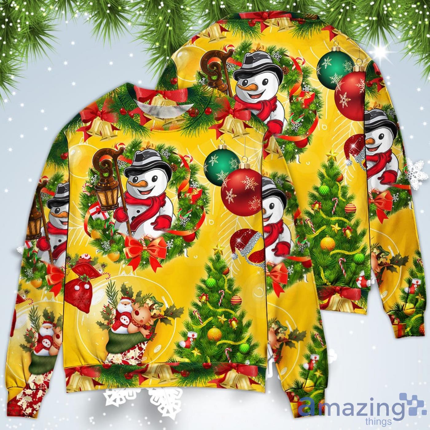 Funny Snowman Happy Tree Yellow Light Christmas Sweatshirt Sweater Informations:
