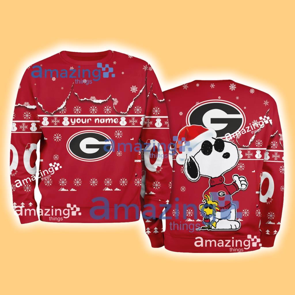 Georgia Bulldogs NCAA Snoopy and Woodstock Cute Personalized Number Christmas Ugly Sweater New Gift Limited Edition