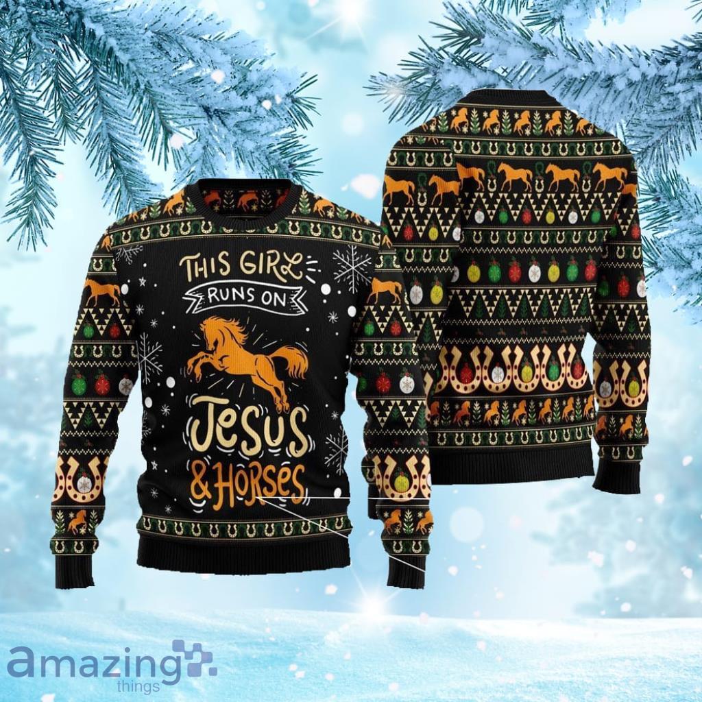 Girls Run On Jesus And Horses Ugly Christmas Sweater Gifts For Christian Families Informations: