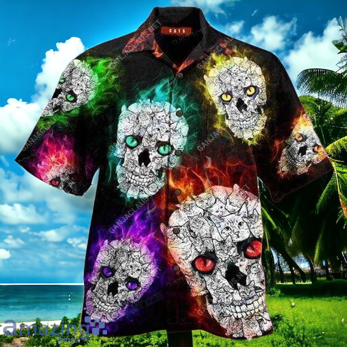 Glowing Cat Skull All Over Printed Hawaiian Shirt Impressive Gift