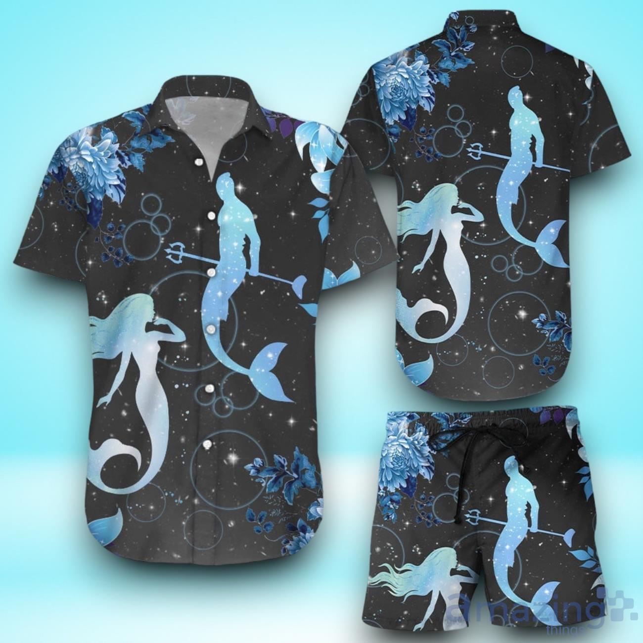 Crafted with utmost precision, our shirt and shorts feature a vibrant blend of tropical colors, reminiscent of a lush Hawaiian paradise. The intricate 3D design brings the aquatic realm to life, showcasing an array of majestic mermaids swimming gracefully among vibrant coral reefs and tropical flora.