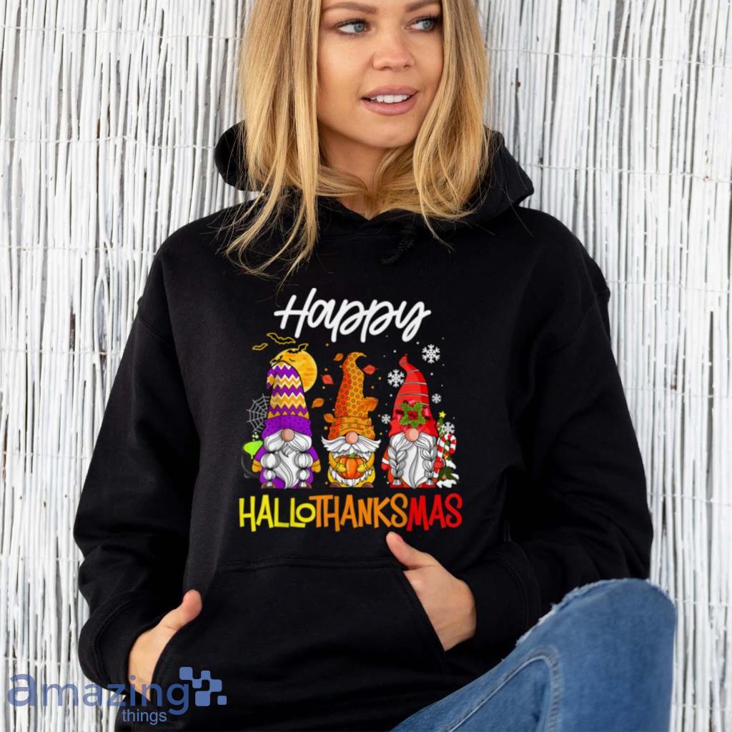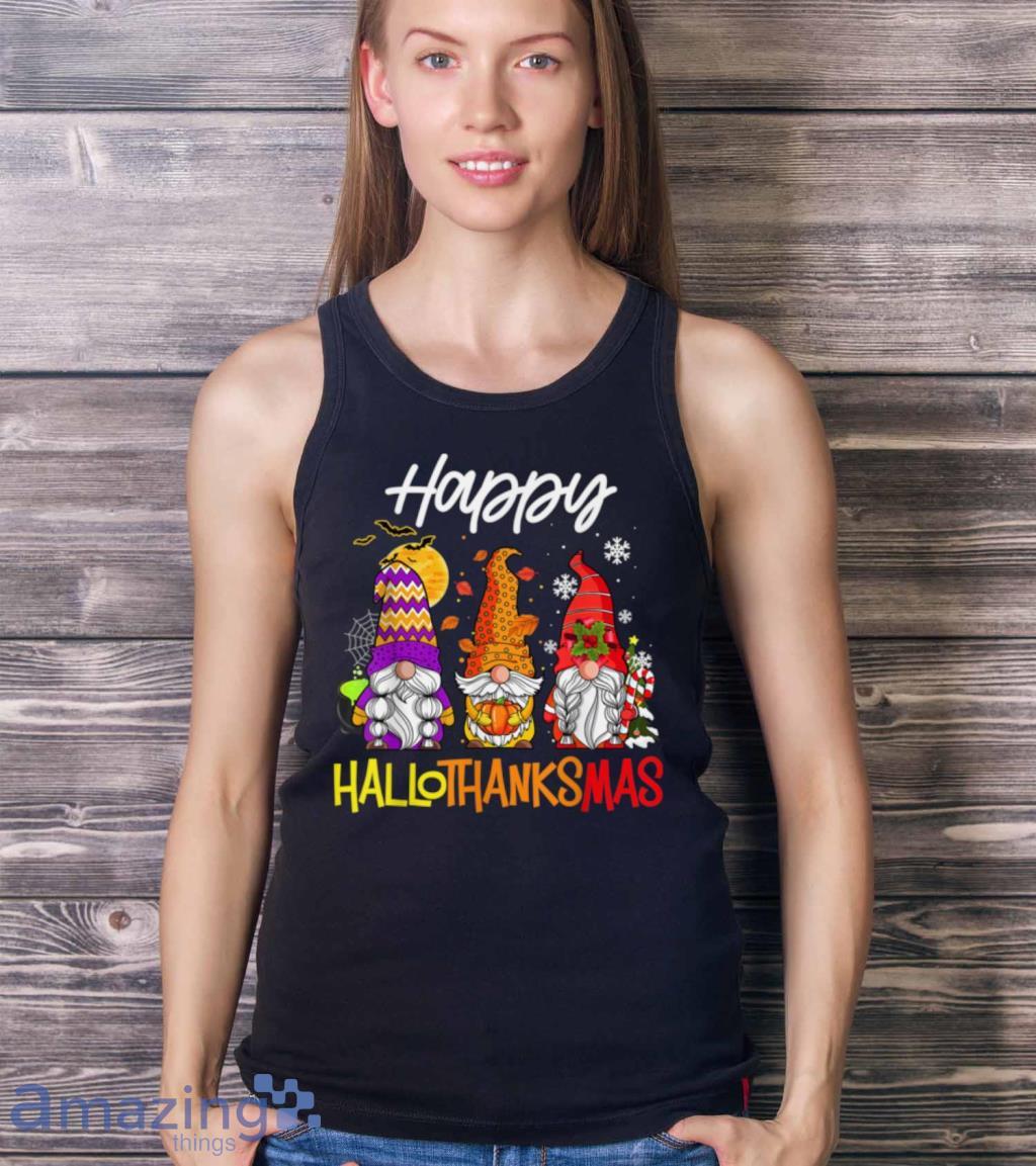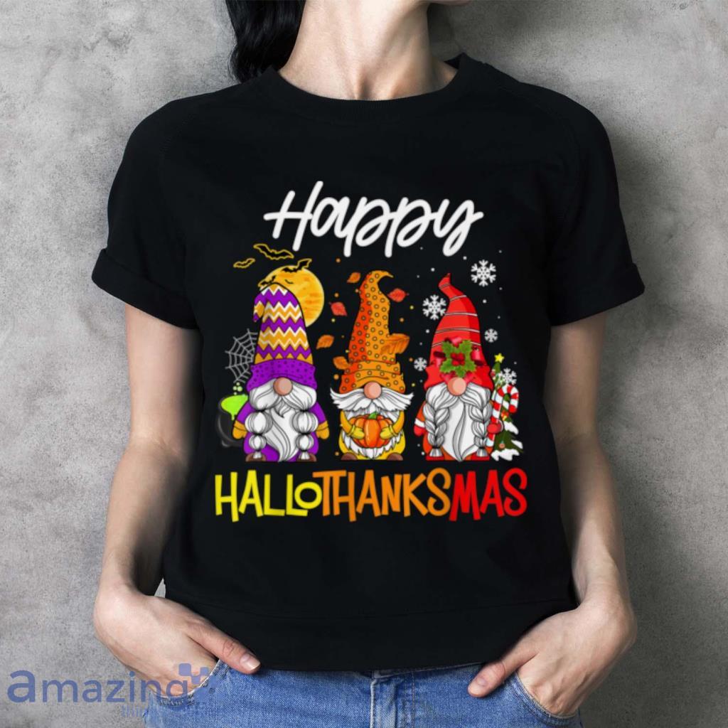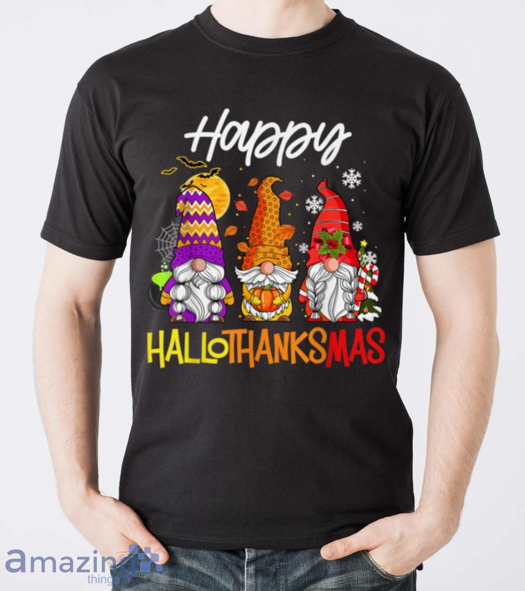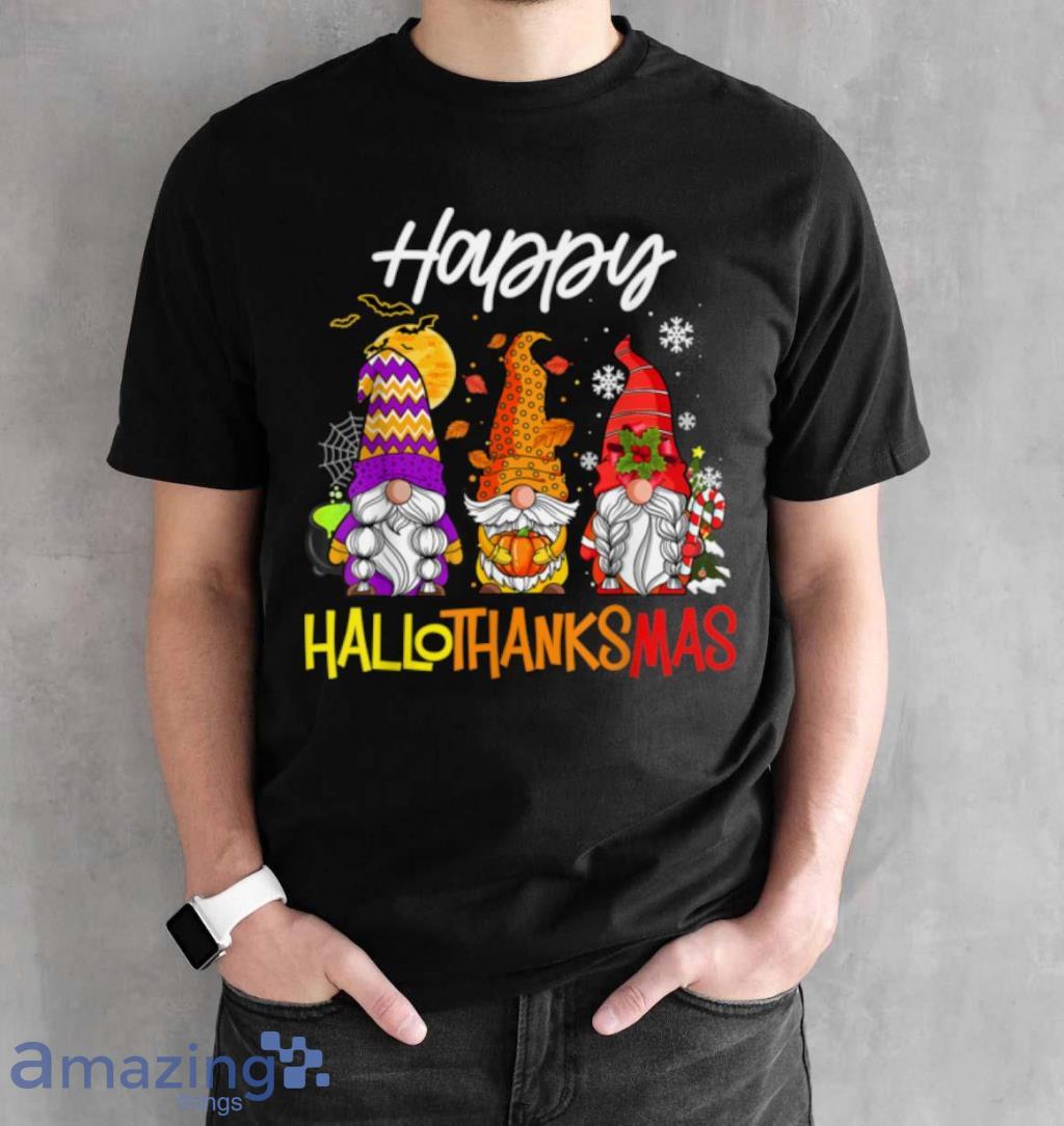 Gnomes Hallothanksmas Halloween Thanksgiving Christmas T Shirt