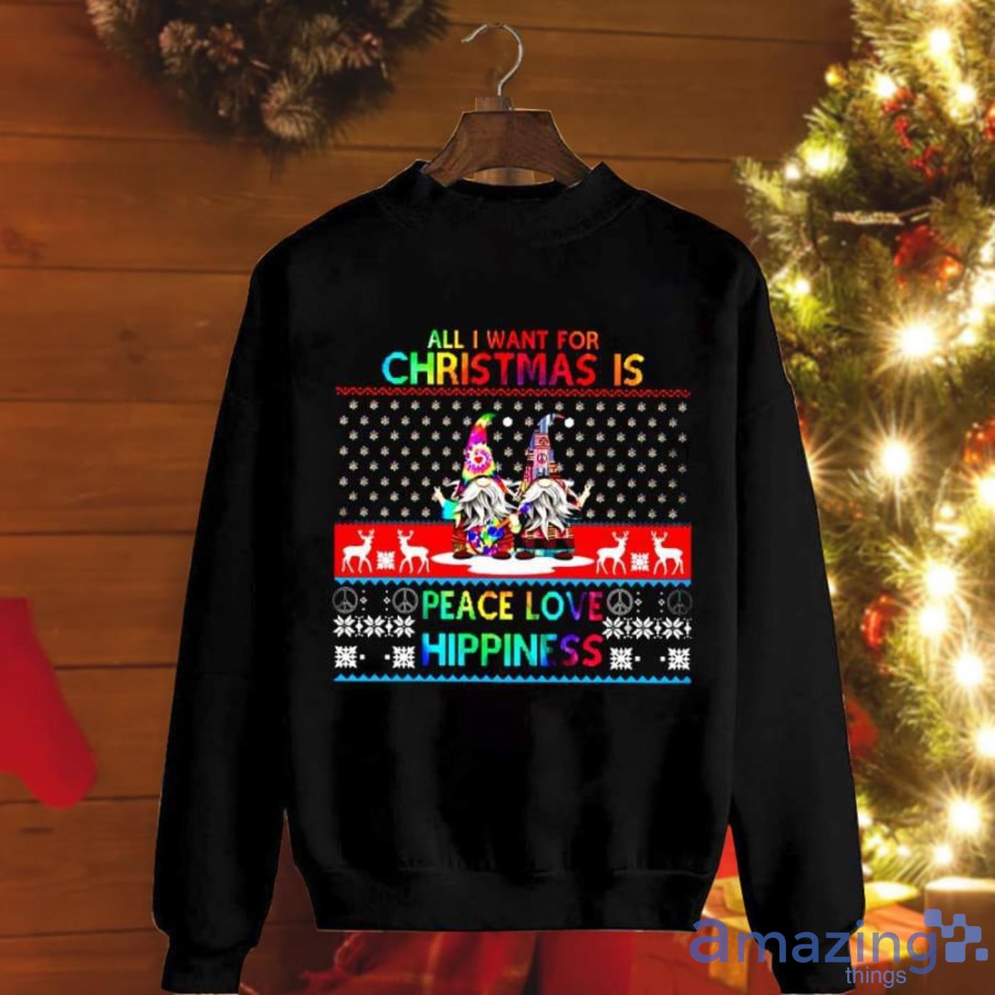 Looking for a way to show your holiday cheer in a stylish and unique way? Look no further than this Christmas sweatshirt! Featuring an adorable gnome design with the words “Peace Love Hippiness Happiness”, this sweatshirt is perfect for anyone who wants to spread some holiday cheer. Made from a high-quality material, it’s sure to keep you warm all season long. So whether you’re headed out to do some Christmas shopping or just want to show your holiday spirit, this sweatshirt is the perfect choice for you!