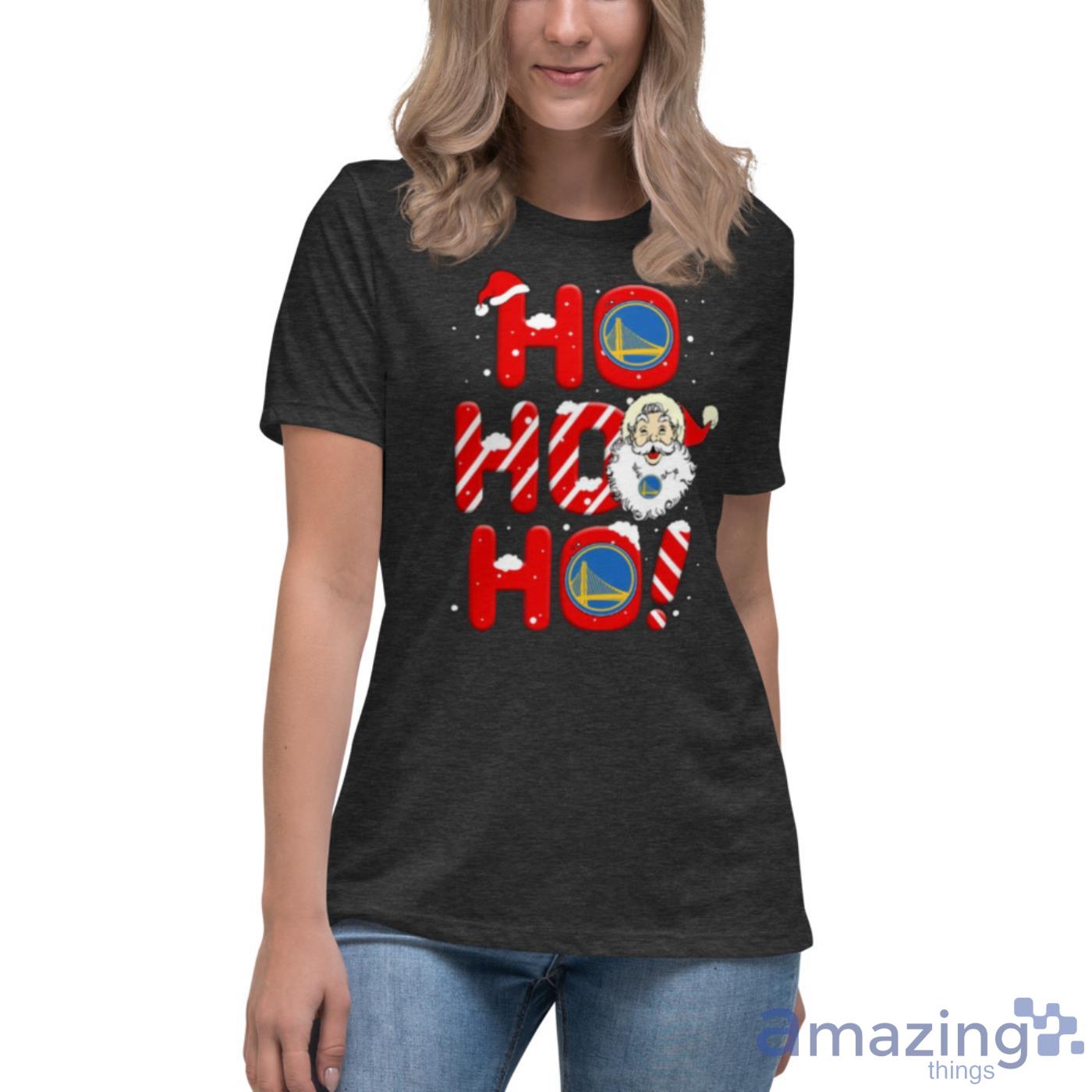 Golden State Warriors NBA Basketball Ho Ho Ho Santa Claus Merry Christmas Shirt Details