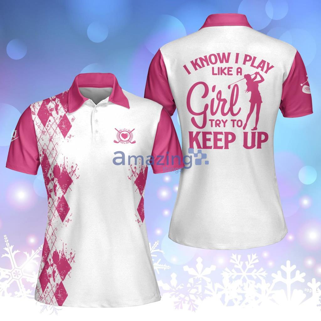 Crafted from high-quality materials, this short sleeve polo shirt offers a luxurious feel against your skin while ensuring breathability during those intense rounds on the golf course. The vibrant color palette and bold slogan “I Know I Play Like A Girl Try To Keep Up” make a powerful statement, showcasing your unwavering determination and resilience.