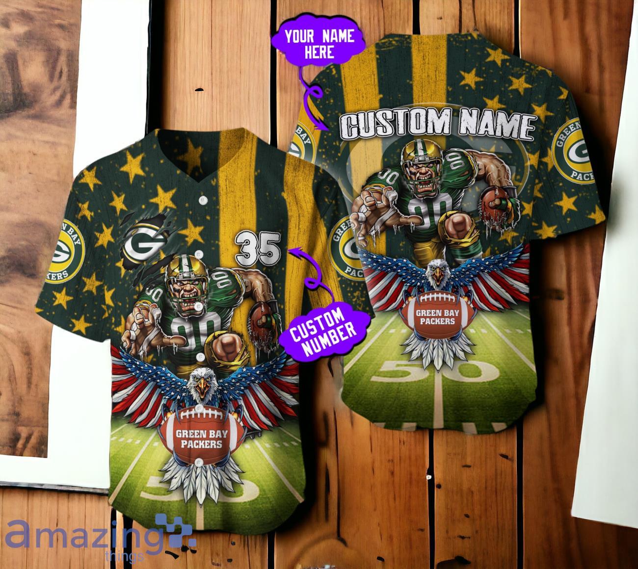 Green Bay Packers 3D Eagle Custom Number & Name Baseball Jersey