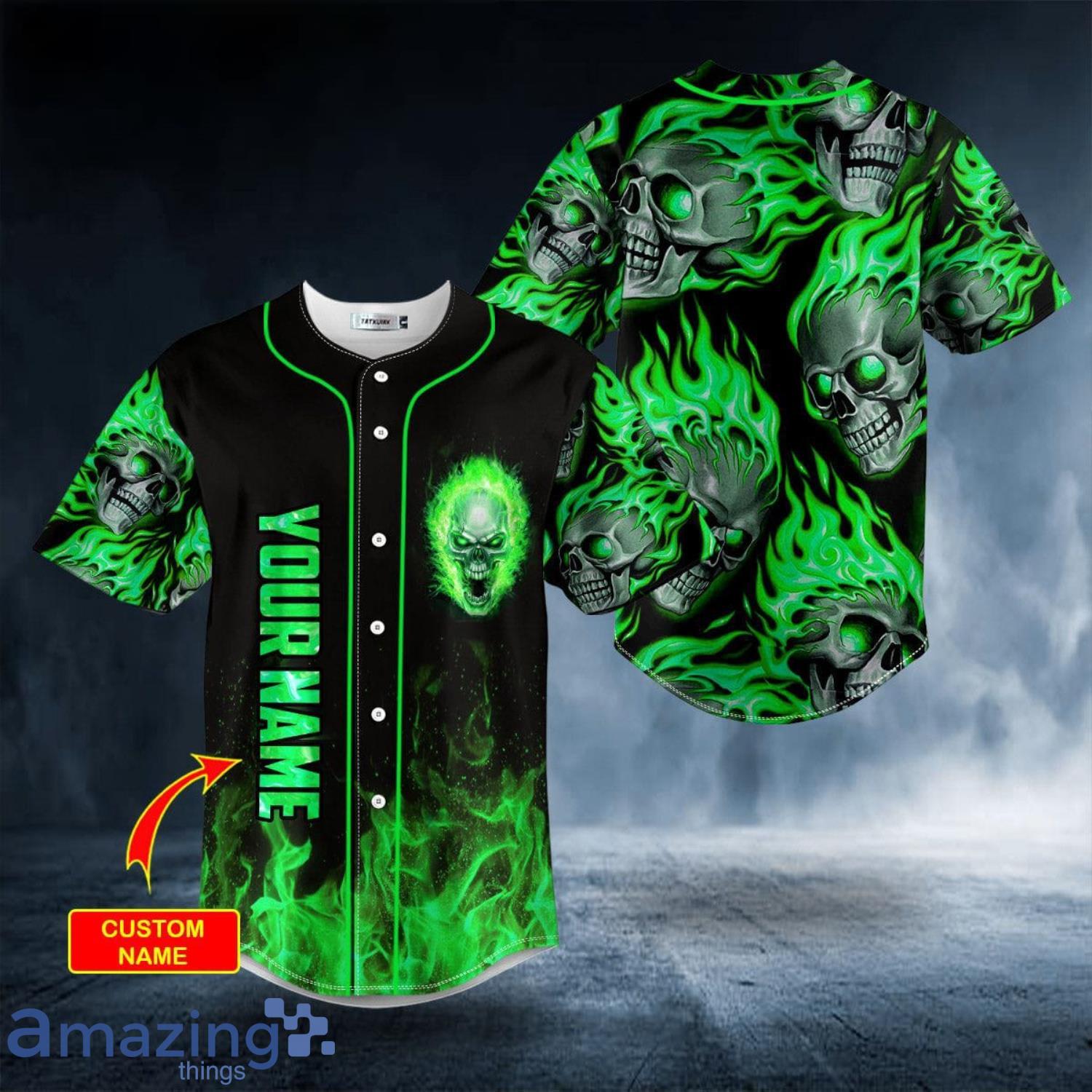 Green Ghost Skull Custom Name All Over Print Baseball Jersey Shirt