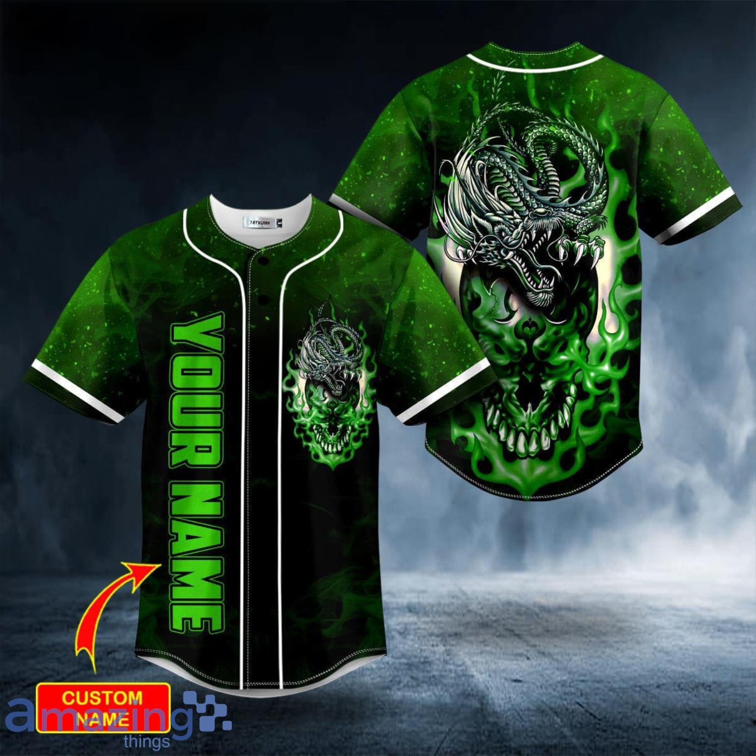 Green ODM Dragon Skull Custom Name All Over Print Baseball Jersey Shirt