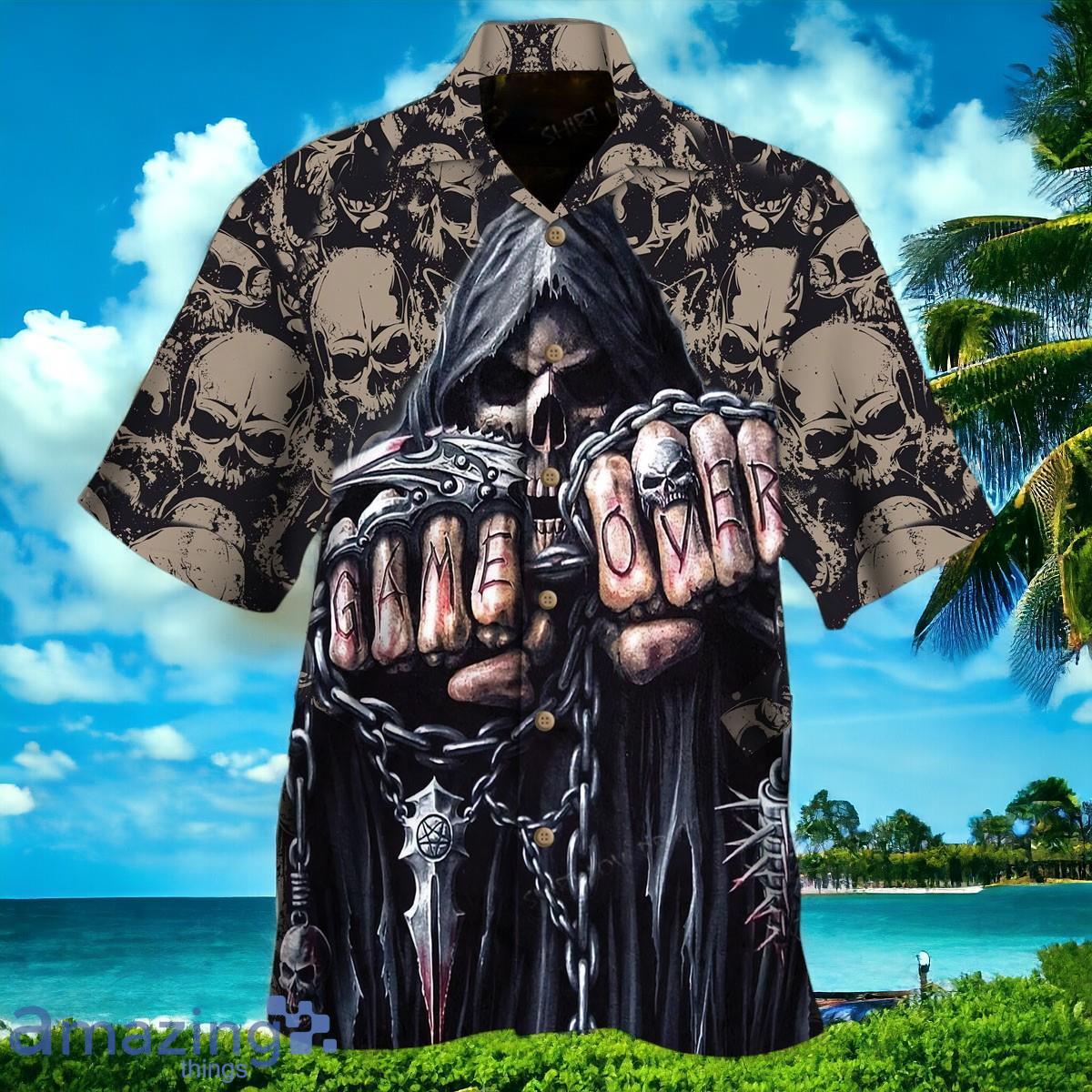 Grim Reaper Game Over Skull Hawaiian Shirt For Men Women Details: