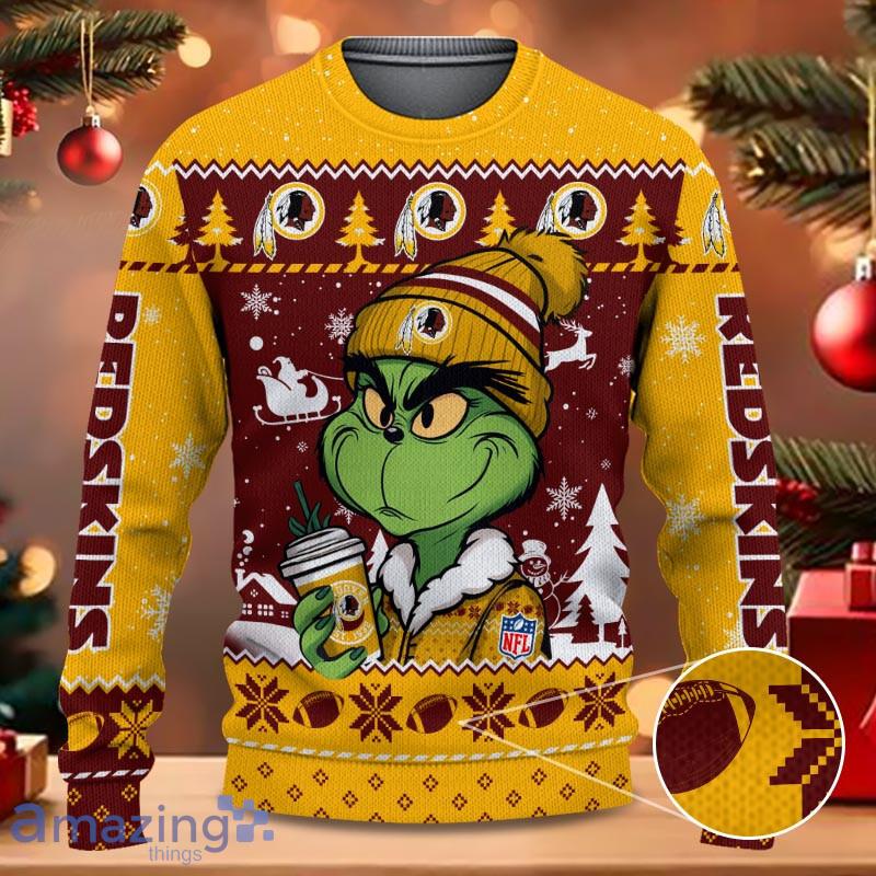 Grinch Dring Outfit Washington Redskin Knitted Christmas 3D Sweater Gift For Fans Information