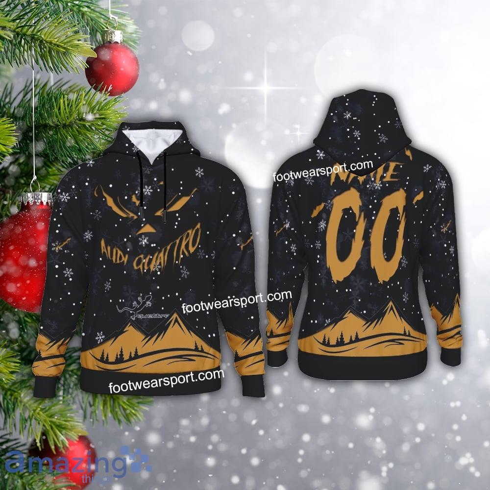 Perfect design for holiday. Get yours this shirt or this is a cute item for your daddy, gift for your mom, and gift for friends on any occasion. buy a cute Grinch Face Audi Quattro Car Racing Christmas 3D Hoodie AOP Sweater For Fans Custom Number And Name now.