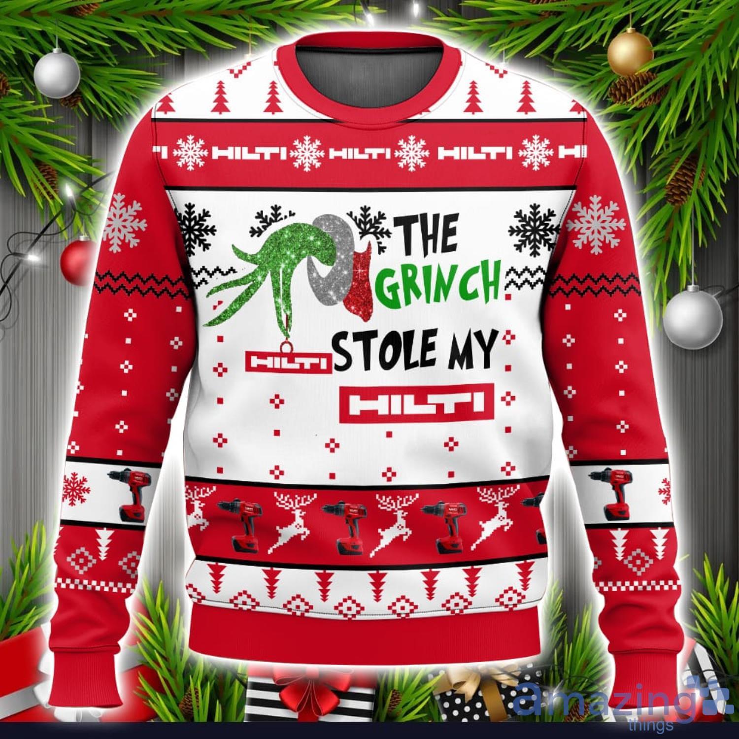 Not only is this sweater delightfully ugly in all the right ways, but it also captures the essence of the holiday spirit with its vibrant colors and playful design. Whether you’re attending an office party, a family gathering, or simply want to add some festive fun to your wardrobe, the Grinch Stole My Hilti 3D Ugly Christmas Sweater is the perfect choice.