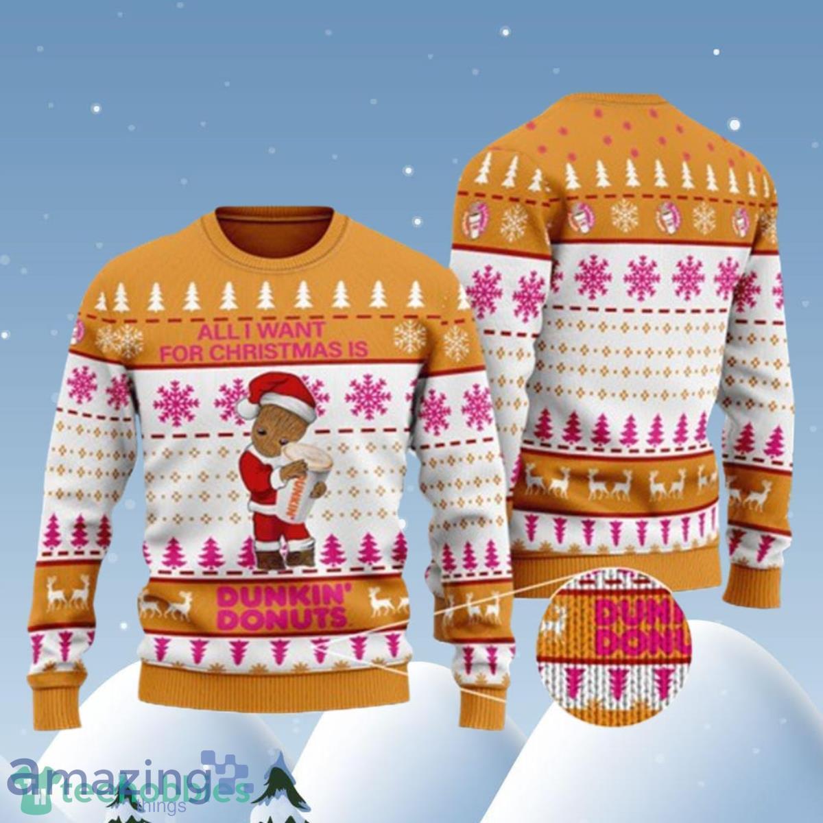 Groot All I Need For Christmas Is Dunkin Donuts Ugly Christmas Sweater Best Gift