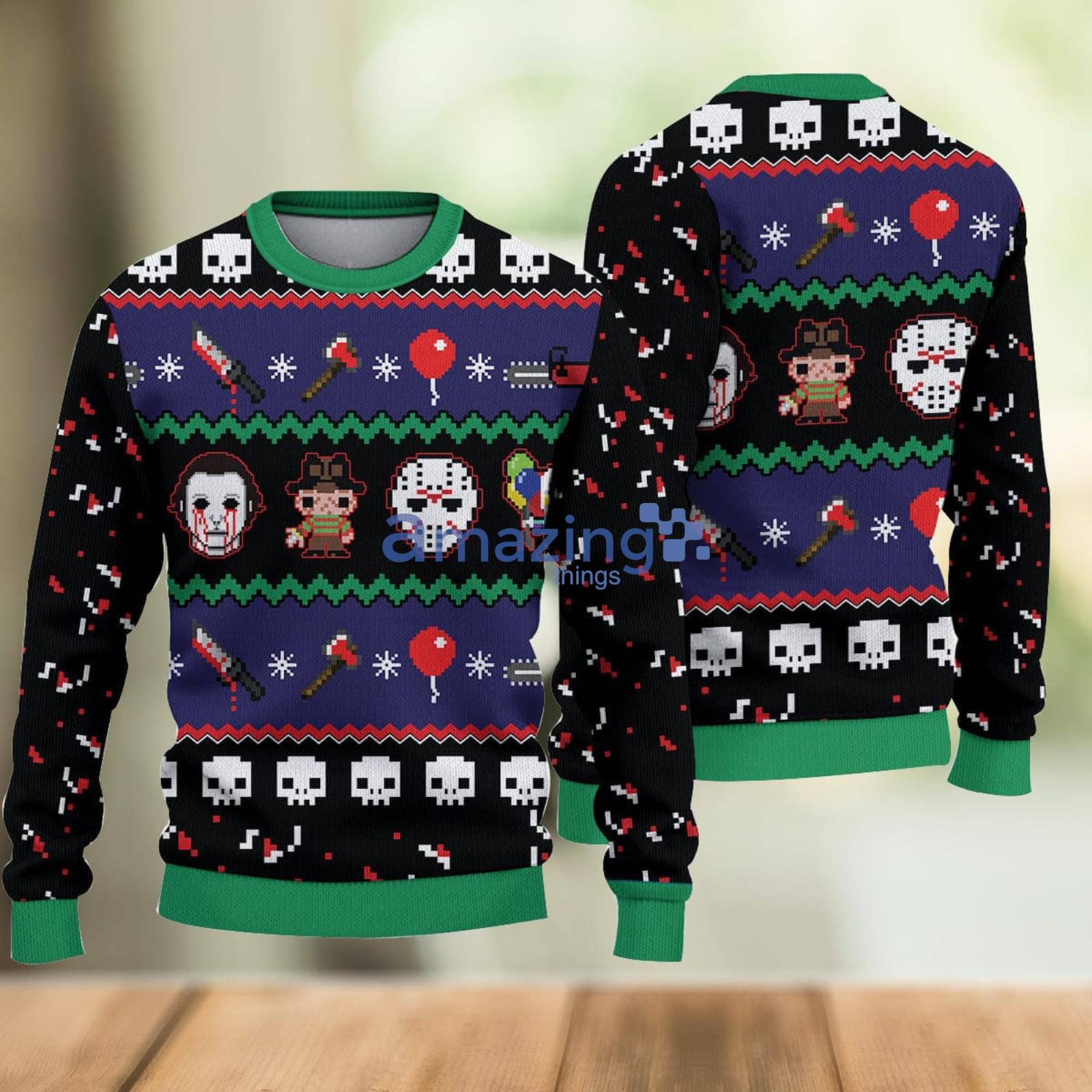 Halloween Horror Christmas Gift For Holiday Micheal Myers, Jason Horror 3D Ugly Christmas Sweater Informations: