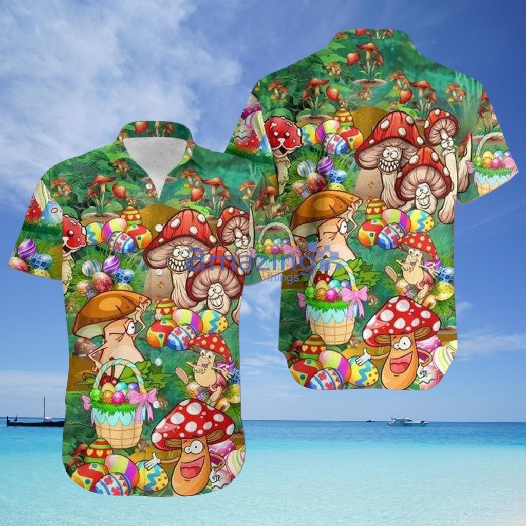 Happy Easter Hippie Mushroom Red Green Hawaiian Shirt