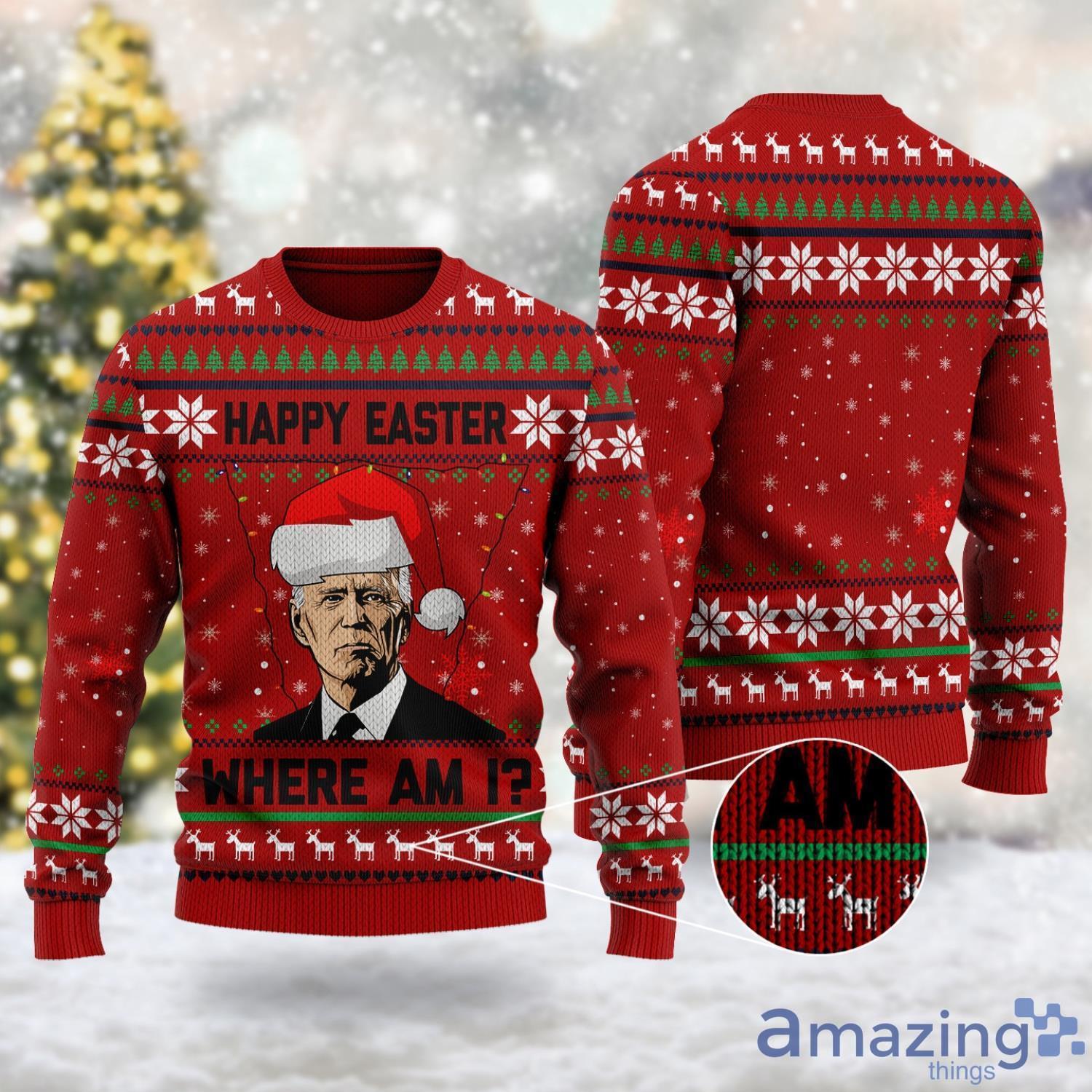 Whether you’re attending an ugly Christmas sweater party or simply want to spread some holiday cheer, our Happy Easter Where Am I 3D All Over Printed Ugly Christmas Sweater is a must-have addition to your festive wardrobe. Don’t miss out on the opportunity to make a memorable statement this Christmas. Order yours today and embrace the joy and laughter of the holiday season!