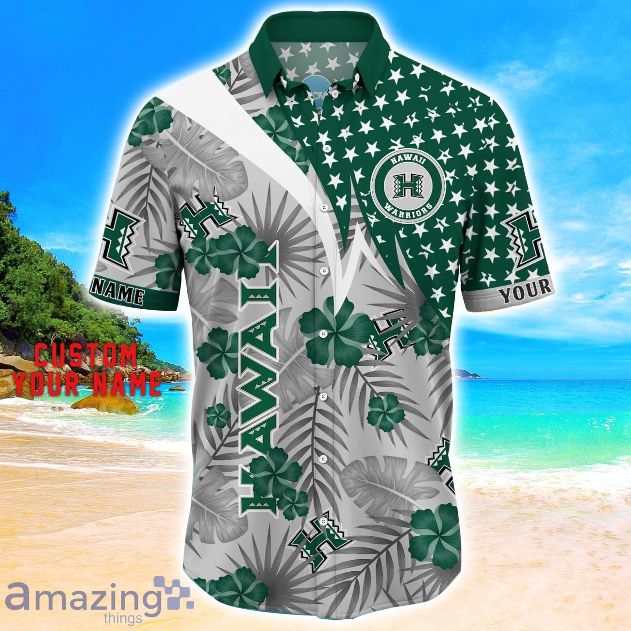 Hawaii Rainbow Warriors Star Tropical Flower 3D Printed Hawaiian Shirt Personalized Name Details: