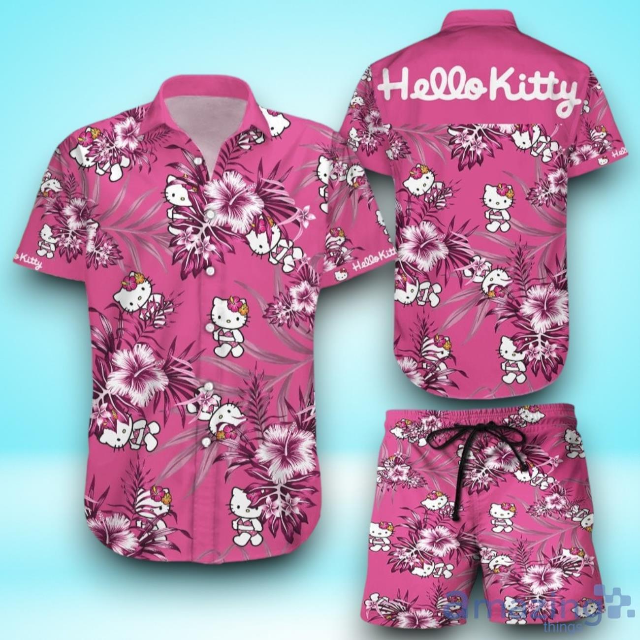 Hello Kitty Hawaiian Shirt & Short For Men And Women Details: