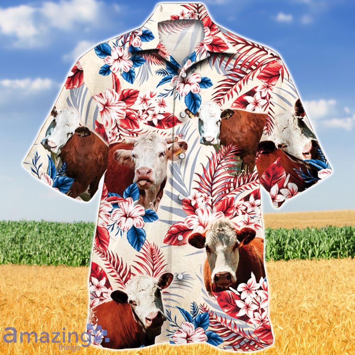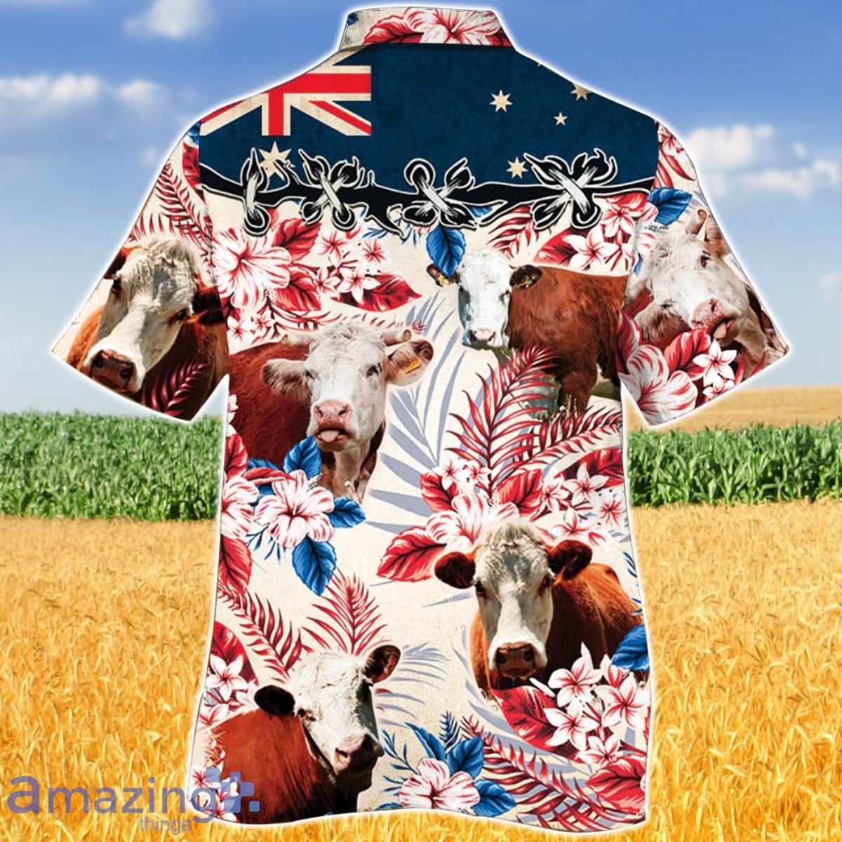 Hereford Cattle Australian Flag Hawaiian Flowers Hawaiian Shirt Aloha Shirt For Men Women