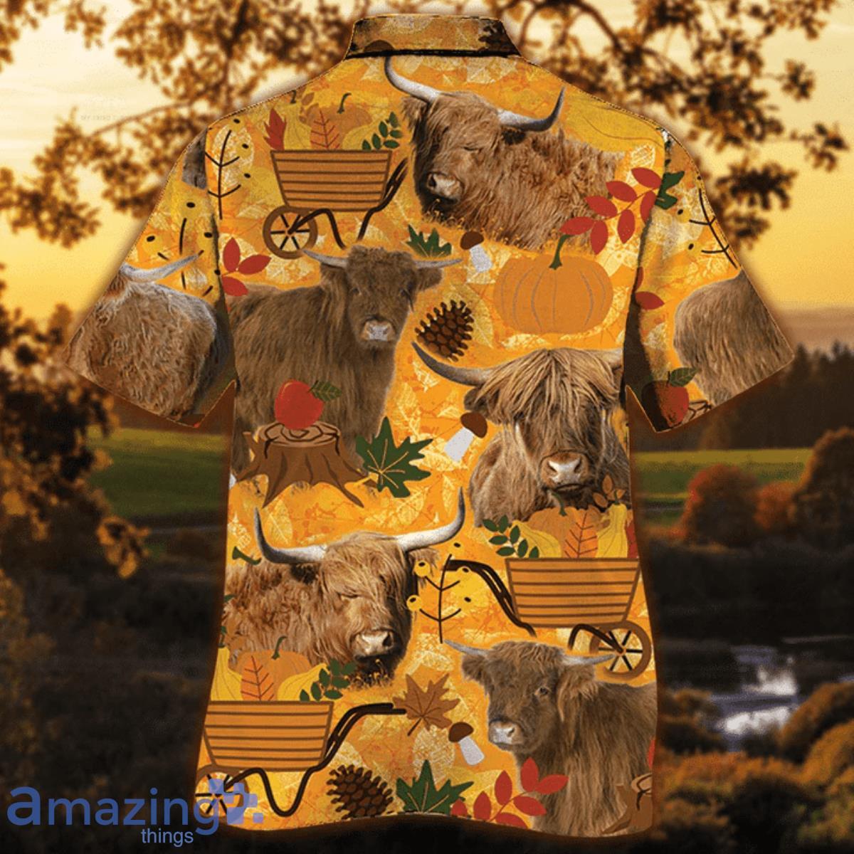 Highland Cattle Lovers Orange Nature Autumn Hawaiian Shirt For Men Women Details: