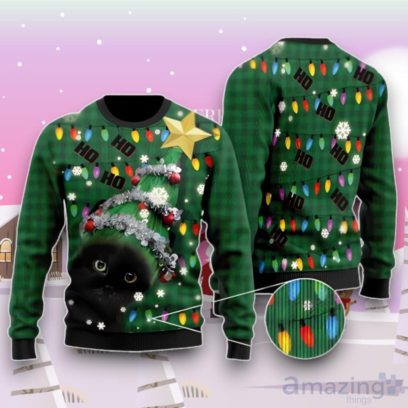 Ho Ho Ho Black Cat Christmas Tree Ugly Sweater For Men And Women