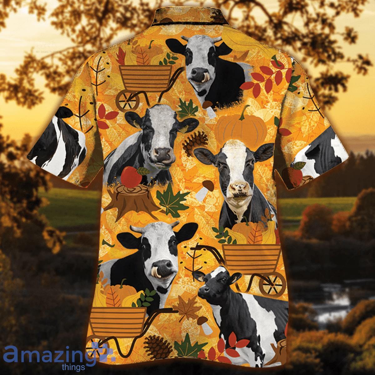Holstein Friesian Cattle Nature Autumn Pumpkin Hawaiian Shirt Aloha Shirt For Men Women Details: