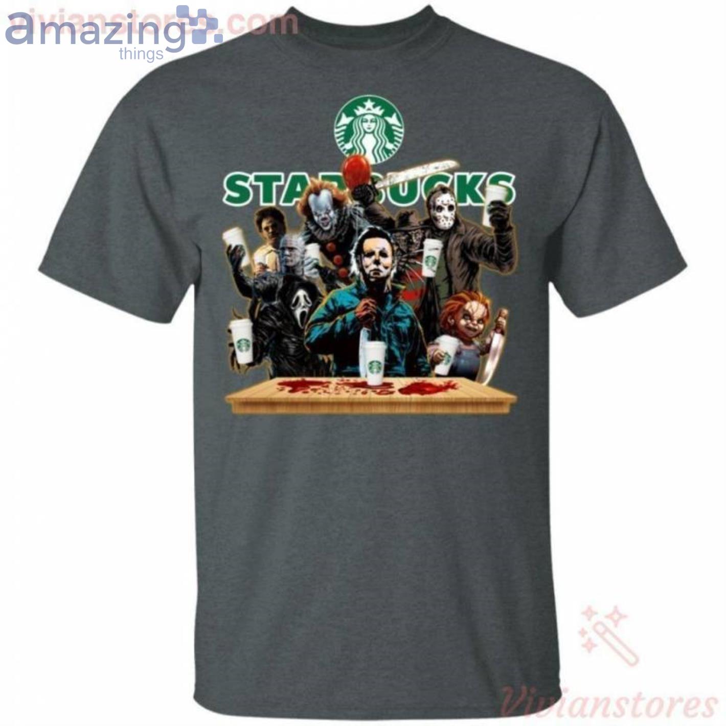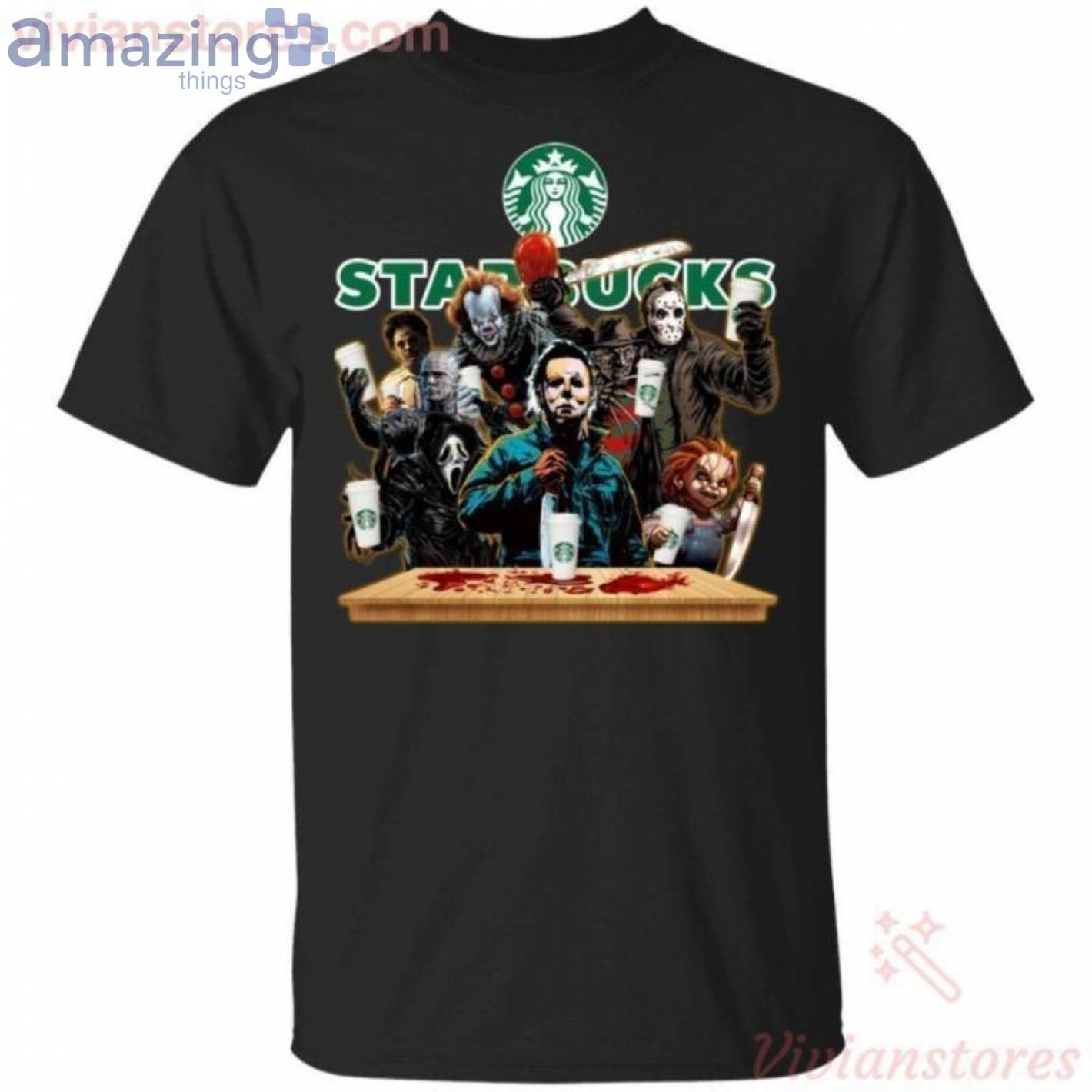 Some of the Horror Characters Drinking Starbucks Funny T-Shirt photos
